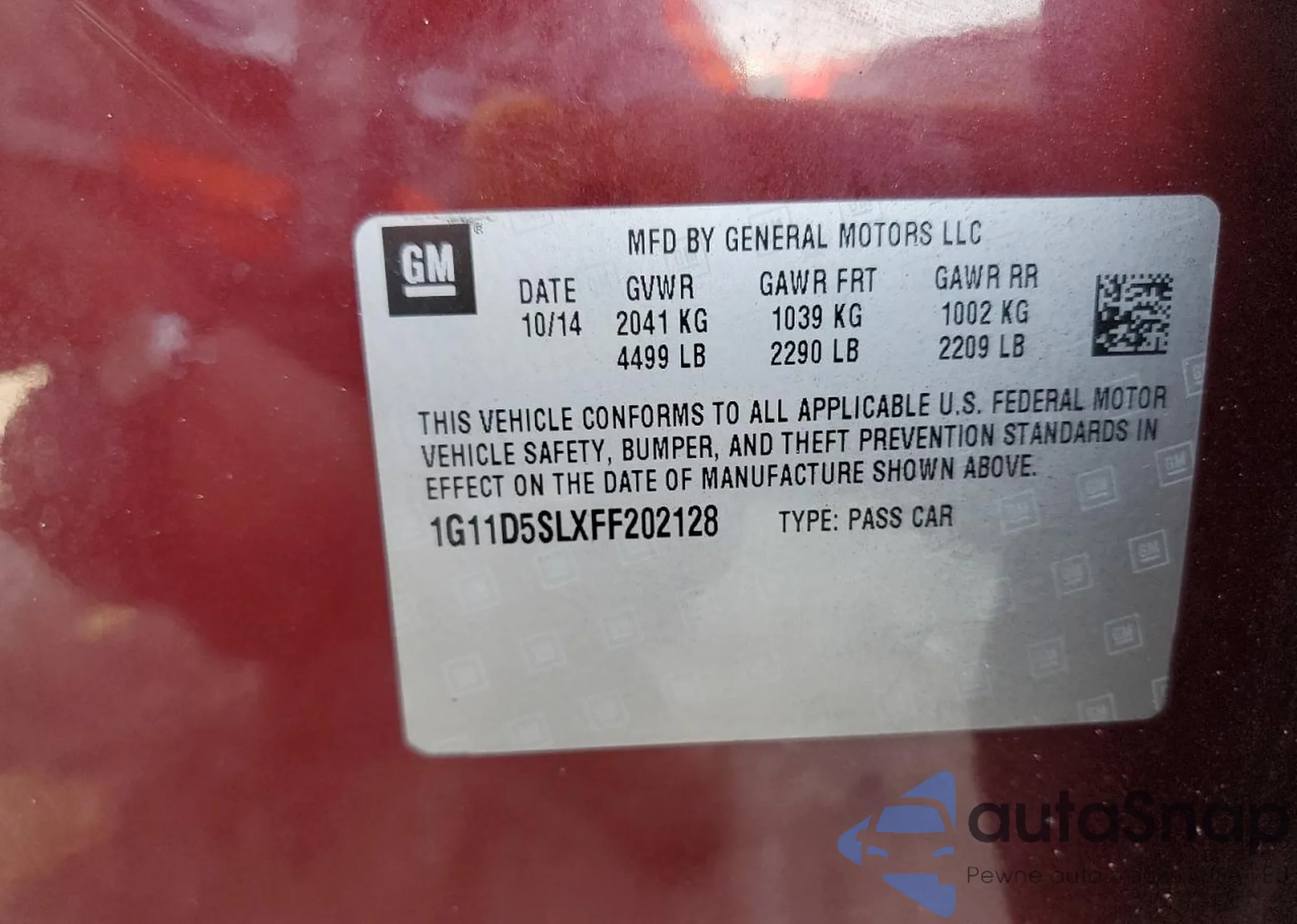 LOT: 65067915 VIN: 1HGCP2F86BA128551