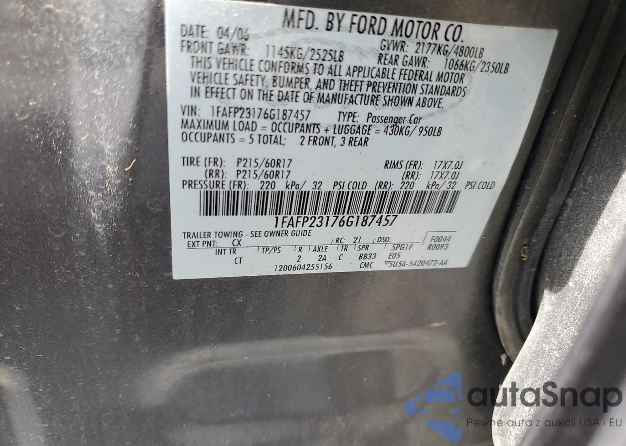 LOT: 67648305 VIN: 1FAFP23176G187457