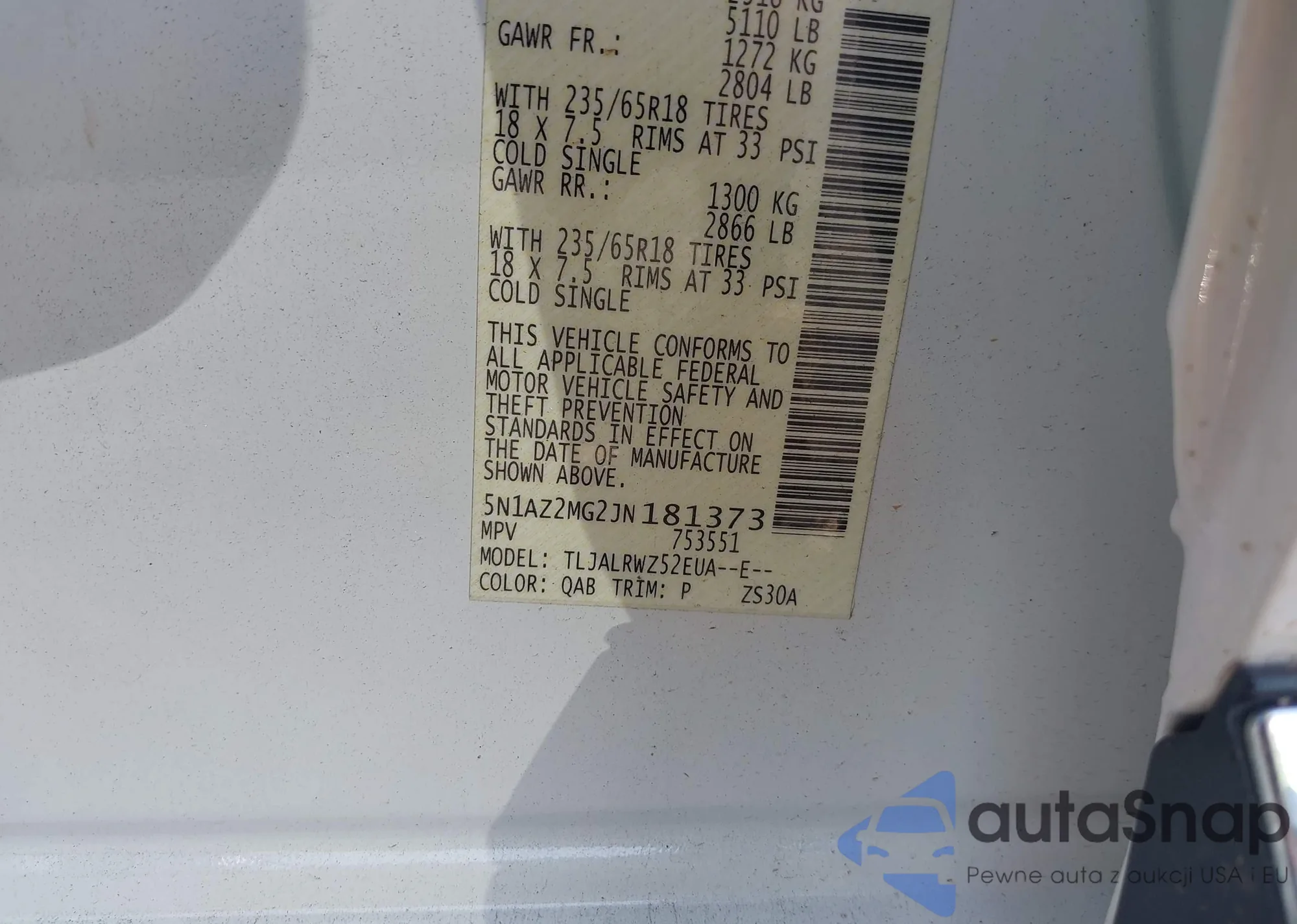 • VIN 5N1AZ2MG2JN181373
