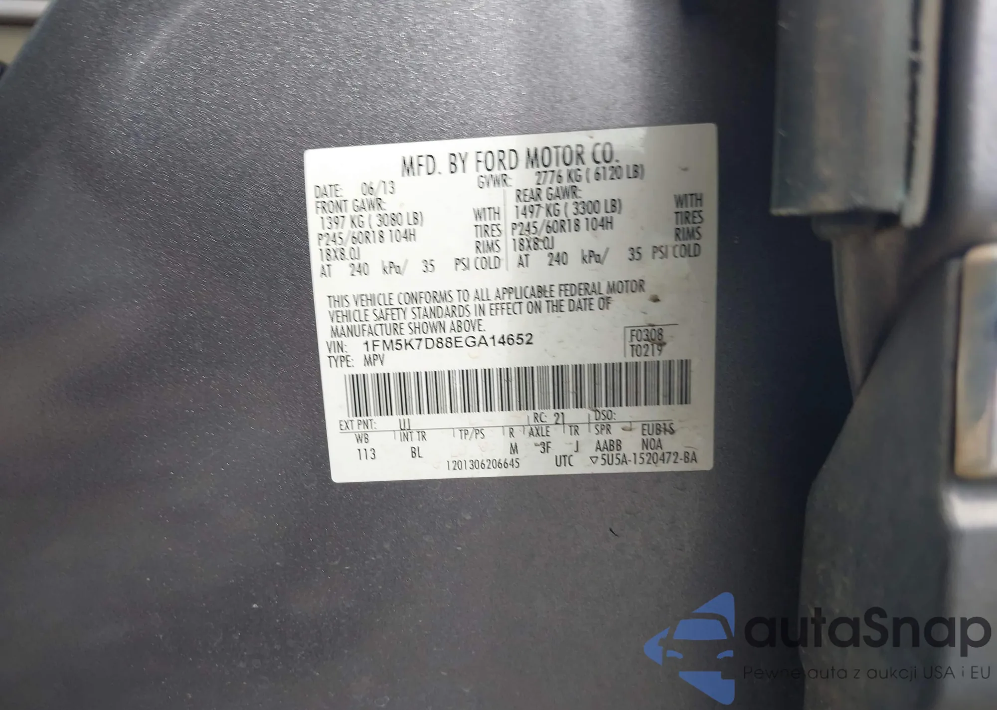 • VIN 1FM5K7D88EGA14652