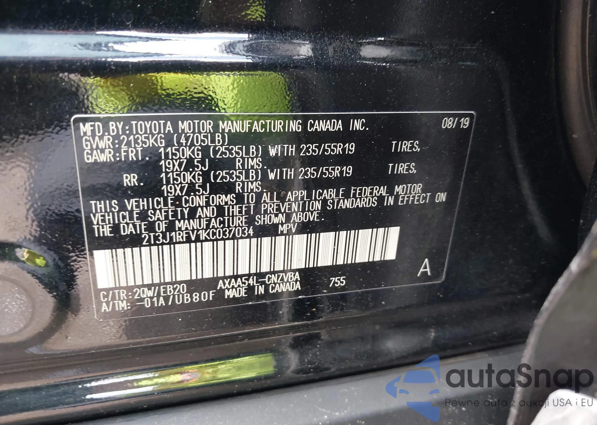 • VIN 2T3J1RFV1KC037034