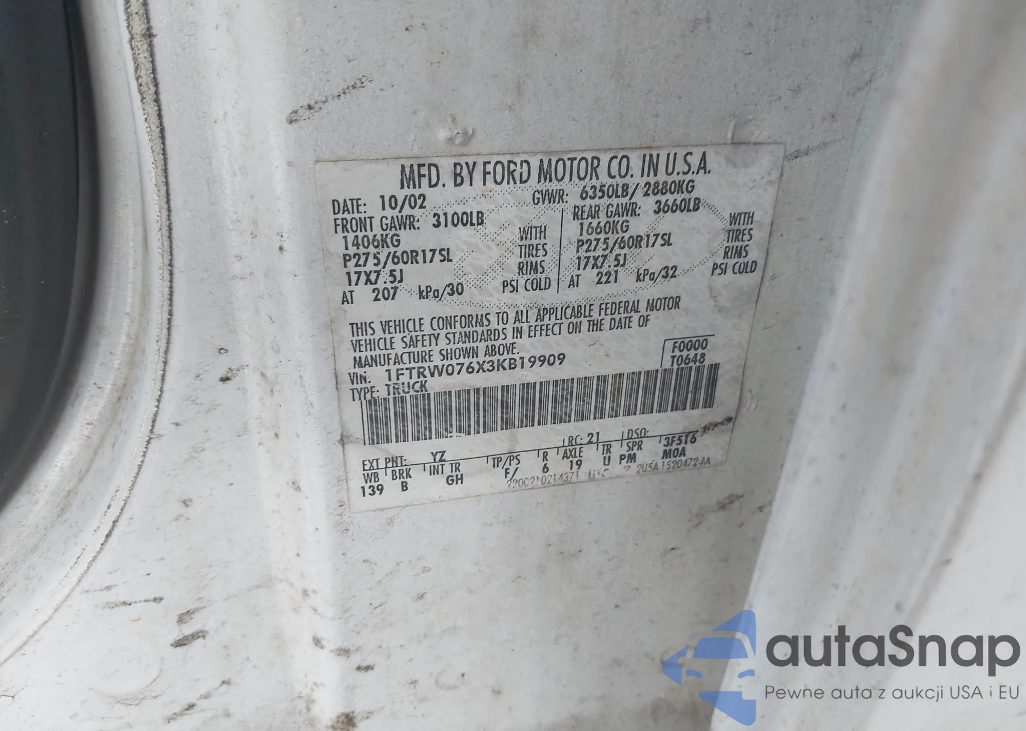 • VIN 1FMUK8DH0SGA20801