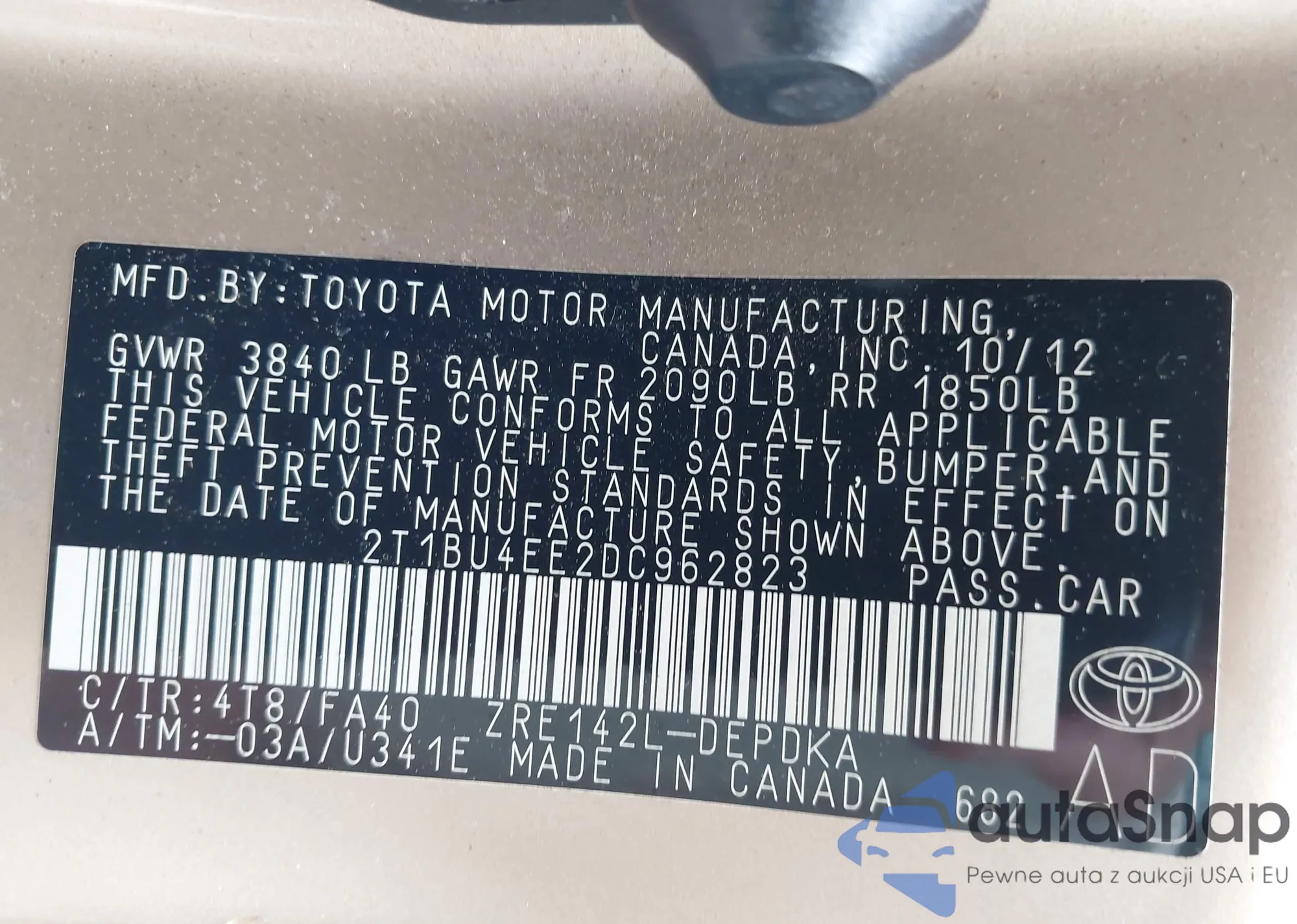 • VIN 2T1BU4EE2DC962823