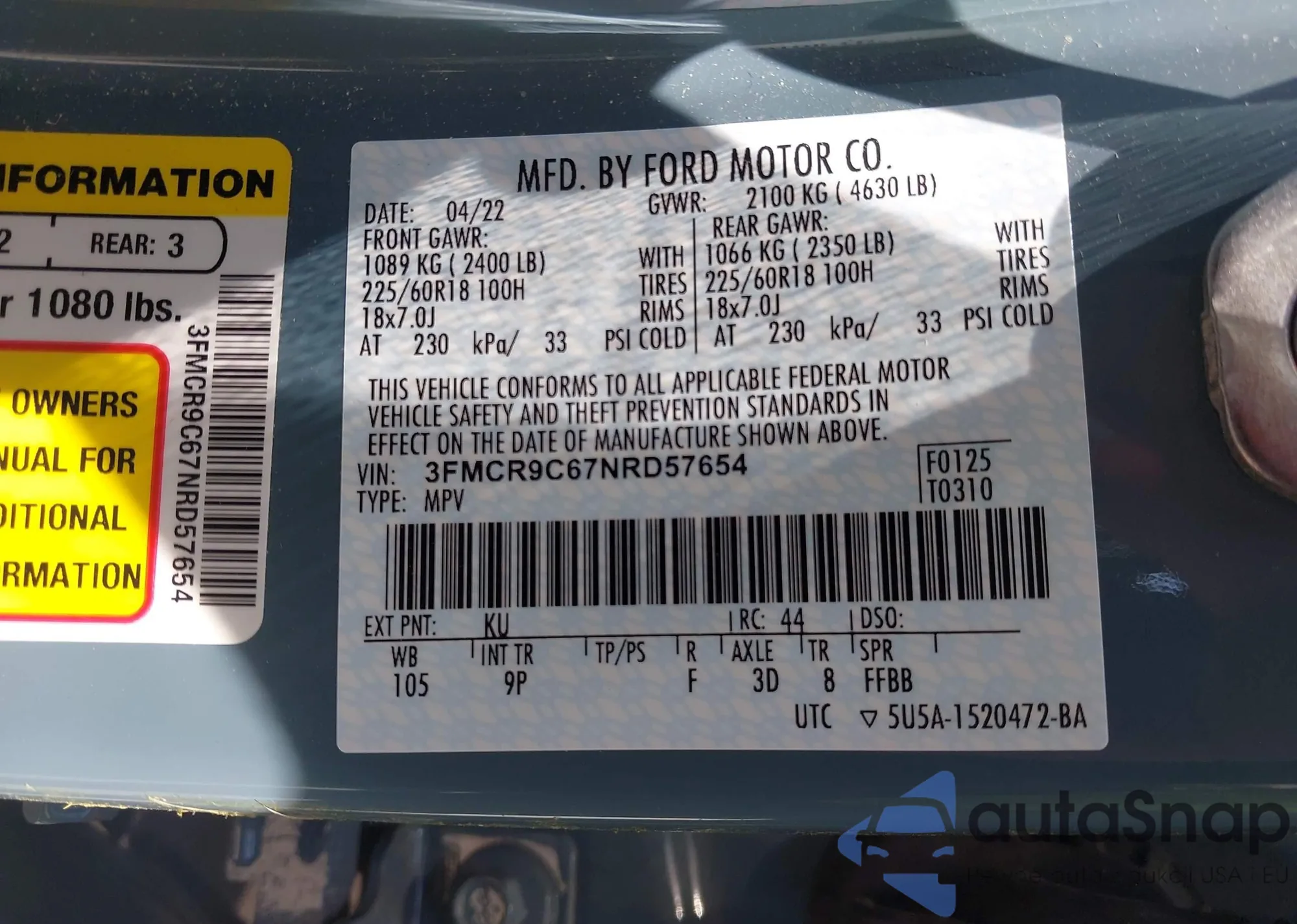 • VIN 3FMCR9C67NRD57654