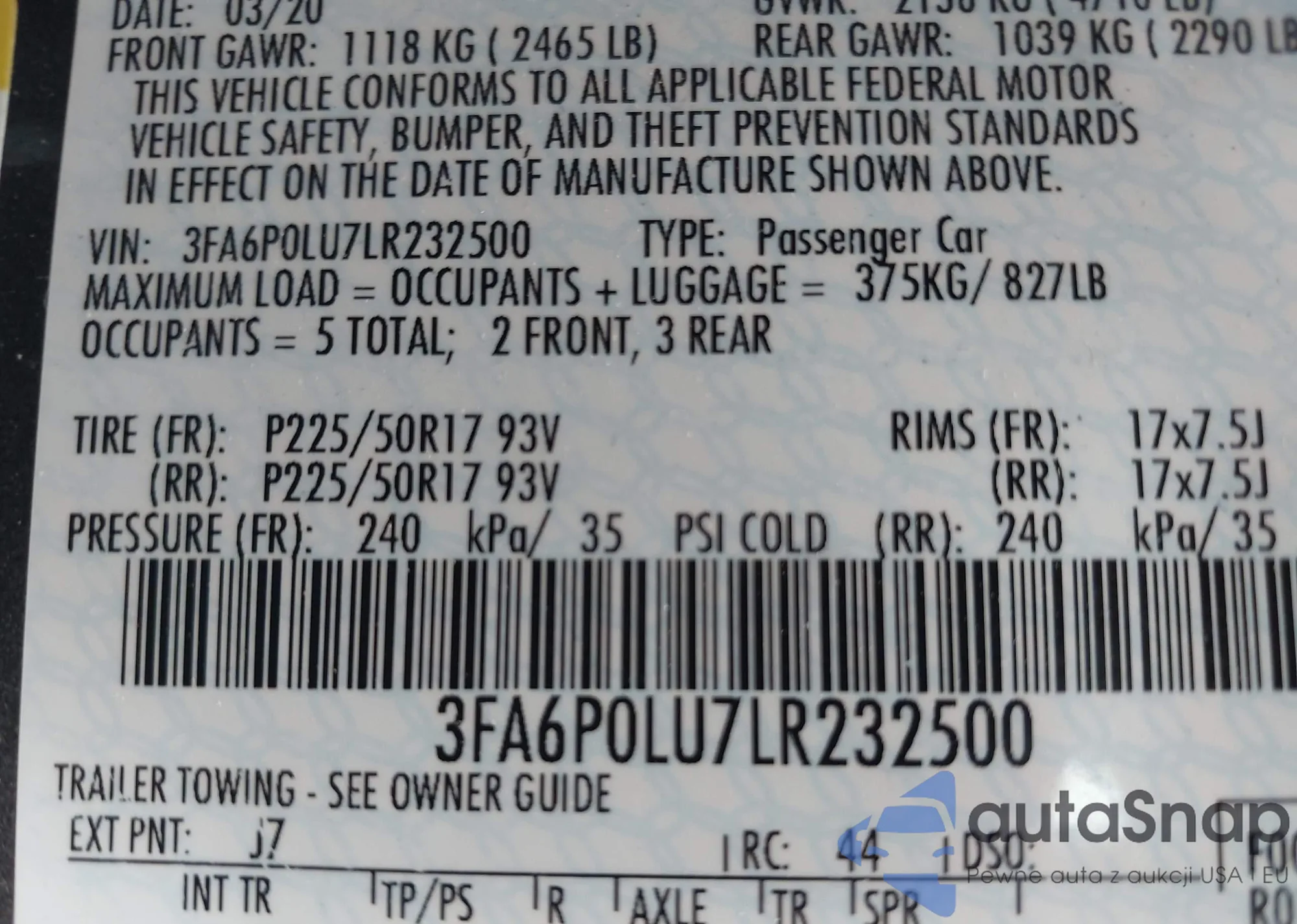 • VIN 3FA6P0LU7LR232500