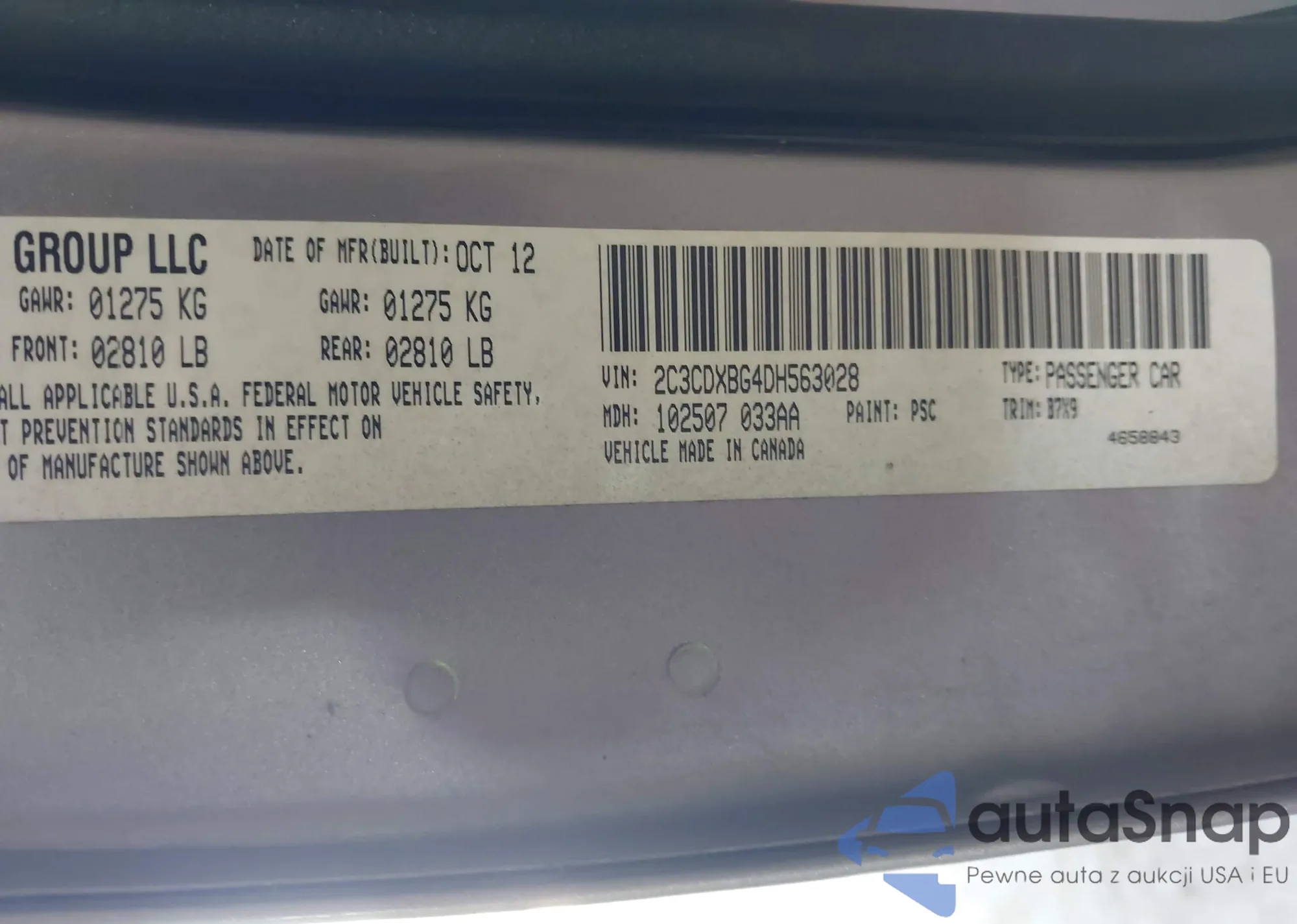 LOT: 42698448 VIN: 2C3CCAAGXLH209269