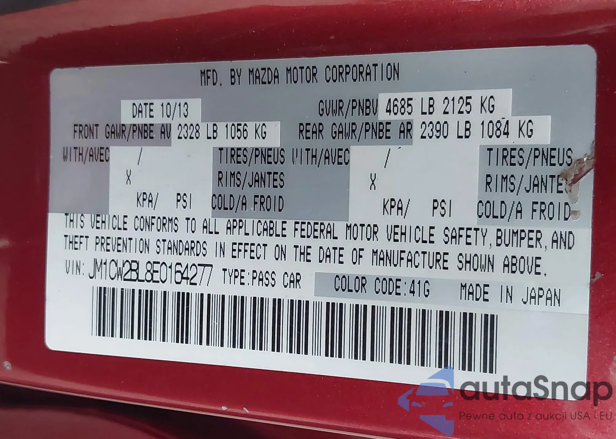 • VIN JM1CW2BL8E0164277