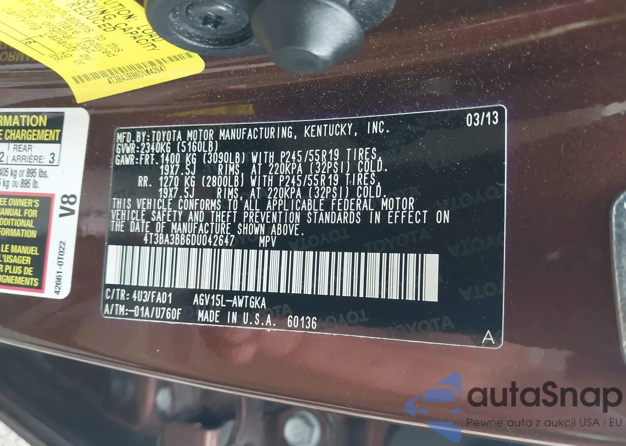 LOT: 42895072 VIN: 4T3BA3BB6DU042647