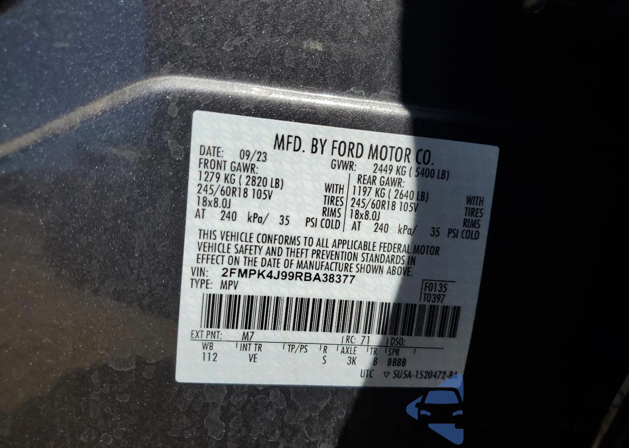 • VIN WBA23AT08RCP78136