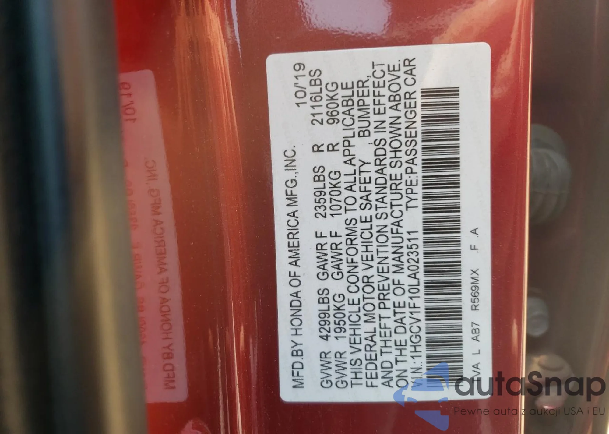 • VIN 1HGCV1F10LA023511