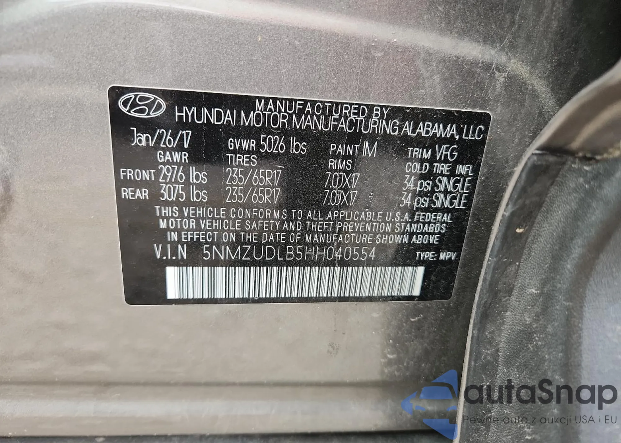 • VIN 5J6RM4H79FL013576