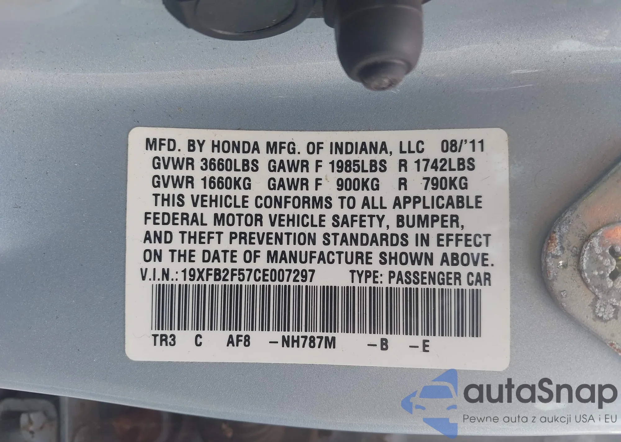 LOT: 42742034 VIN: 1HGCM56427A217726
