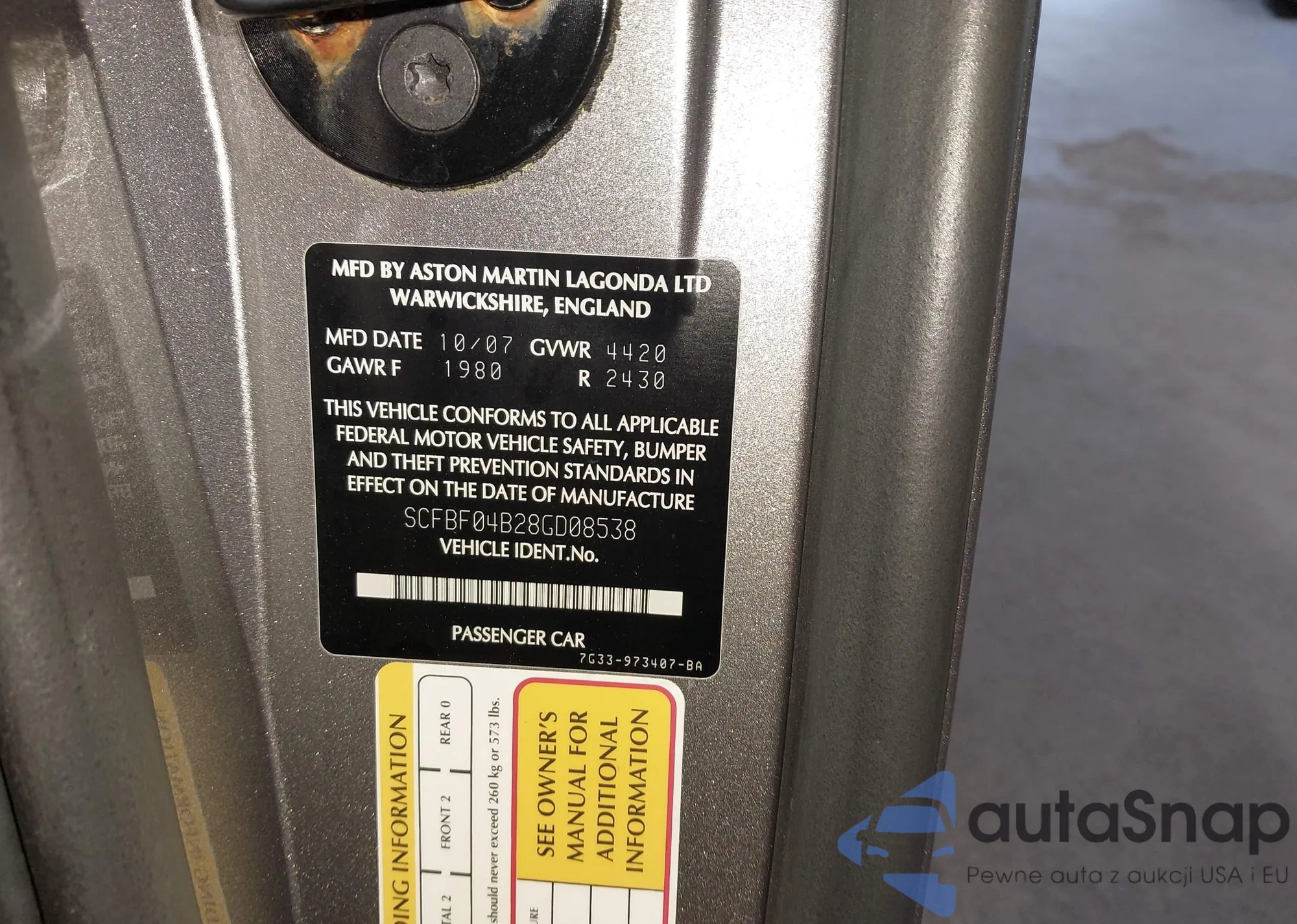 LOT: 43054496 VIN: SCFBF04B28GD08538