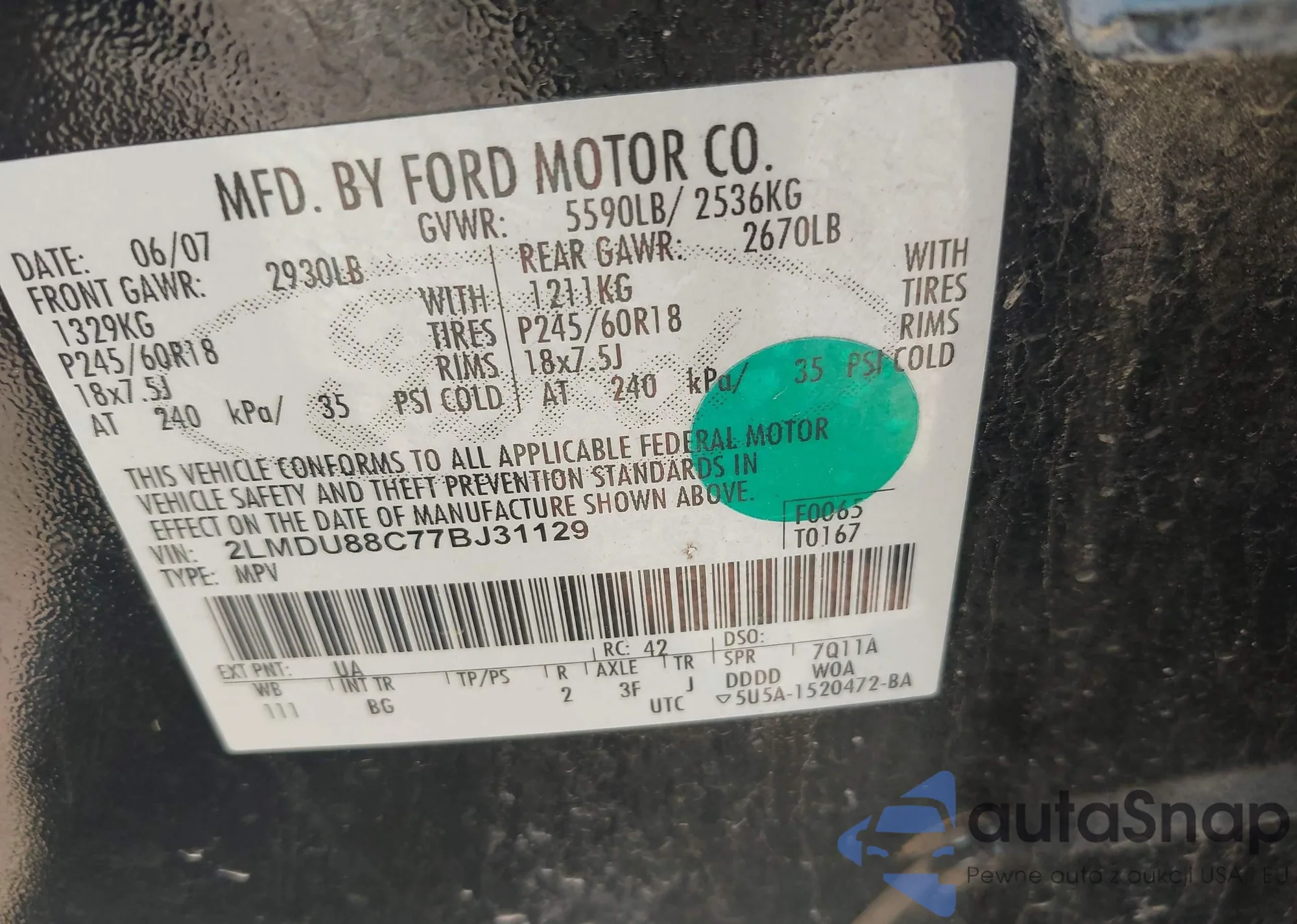 • VIN 2LMDU88C77BJ31129