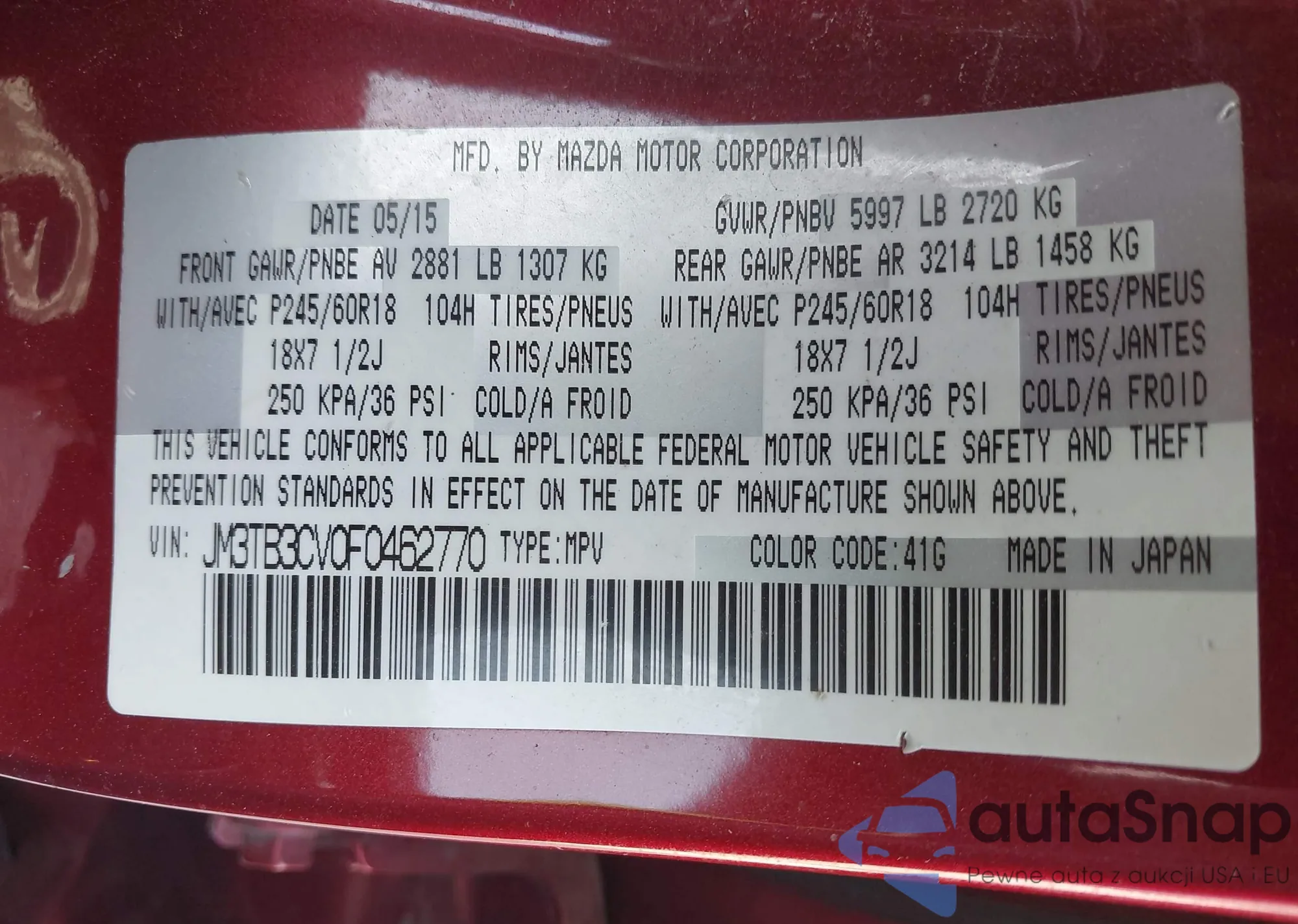 • VIN JM3TB3CV0F0462770