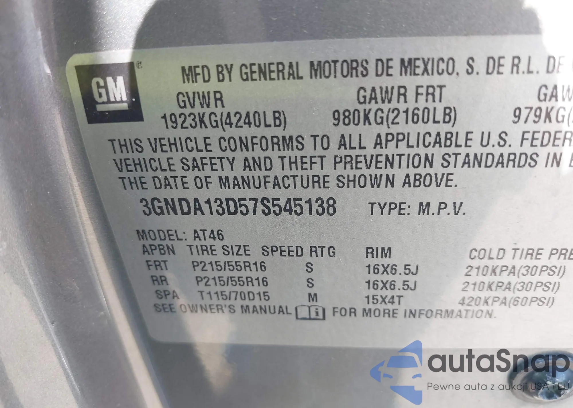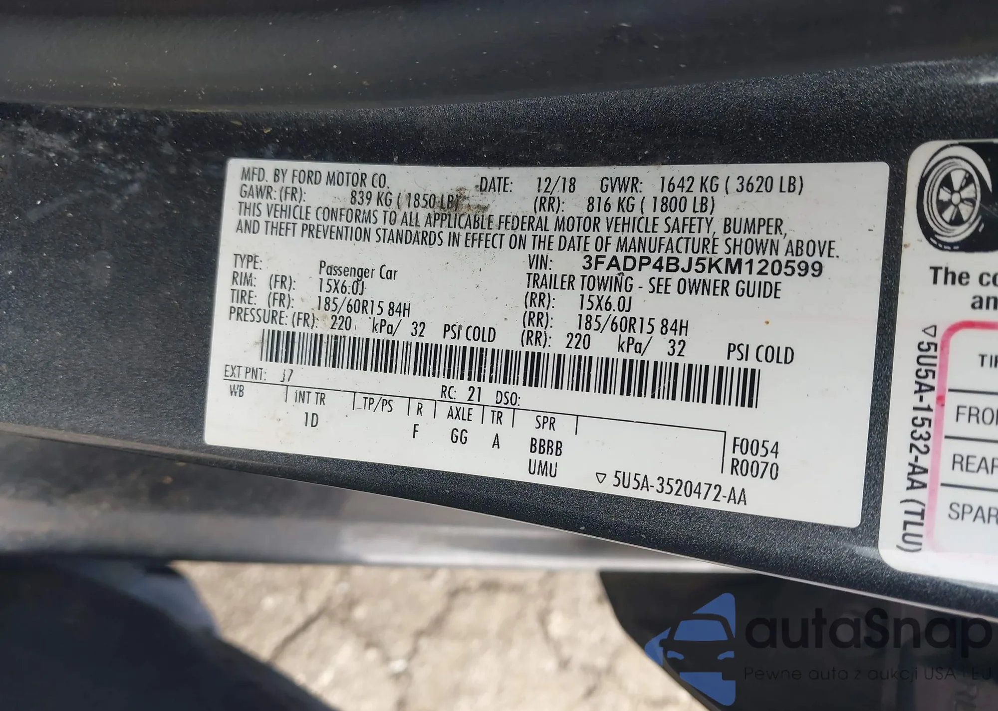 • VIN KNAG64J70S5332068