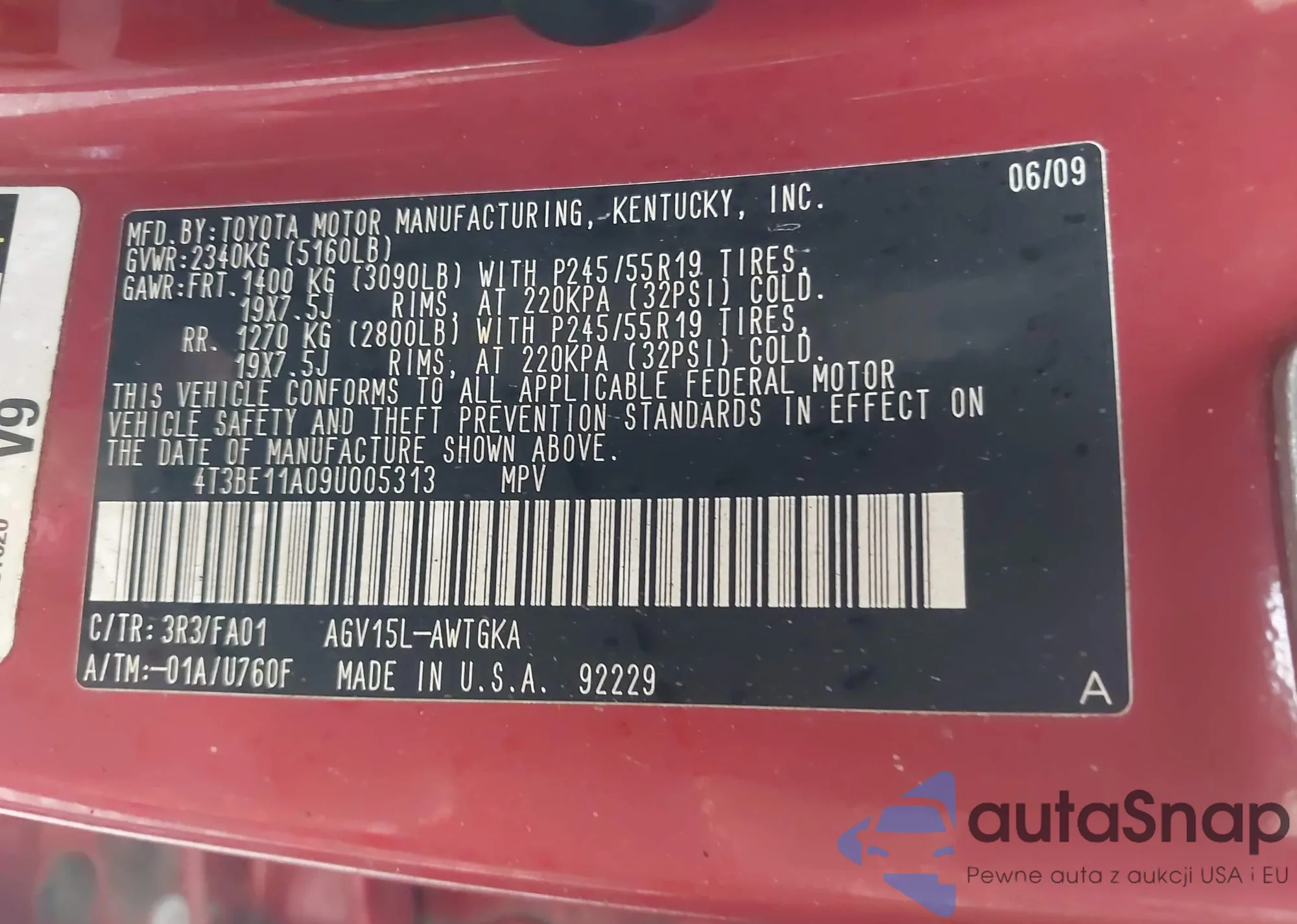 • VIN 4T3BE11A09U005313