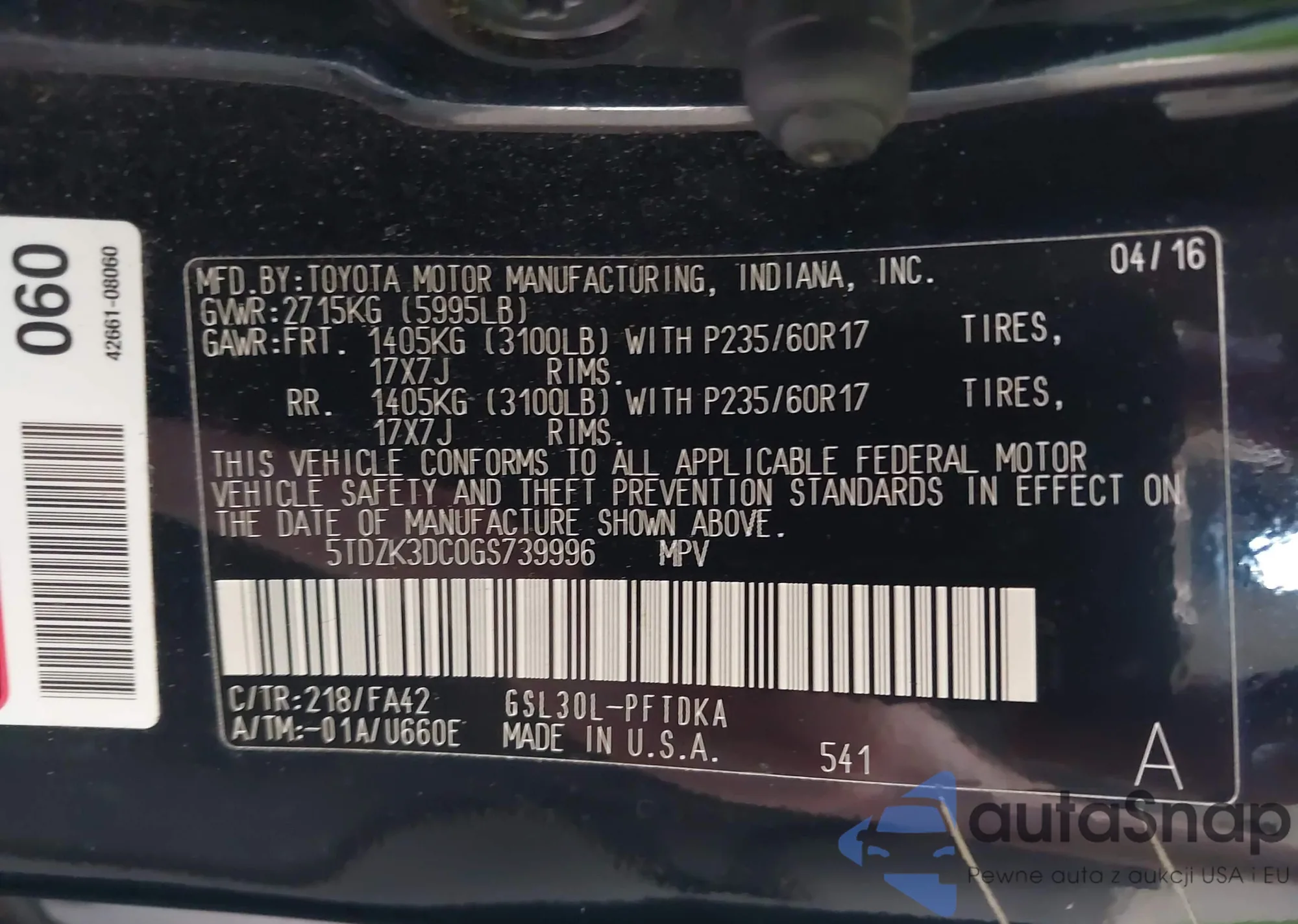 LOT: 42365290 VIN: 4T3BE11A09U005313