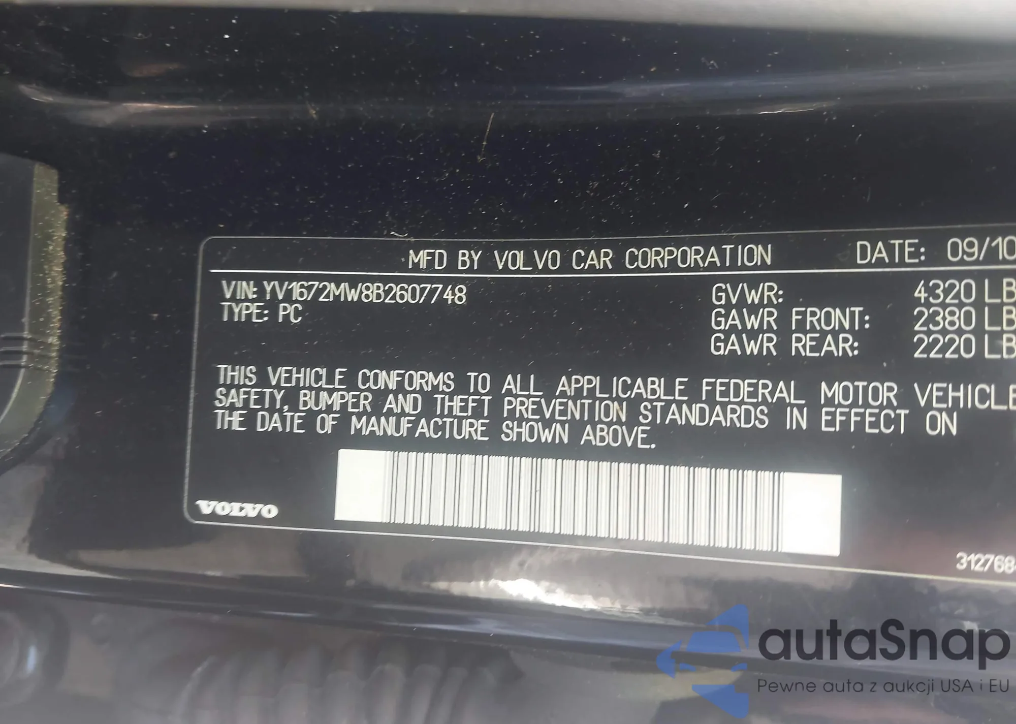 LOT: 43073243 VIN: 3VWSP69M11M136758