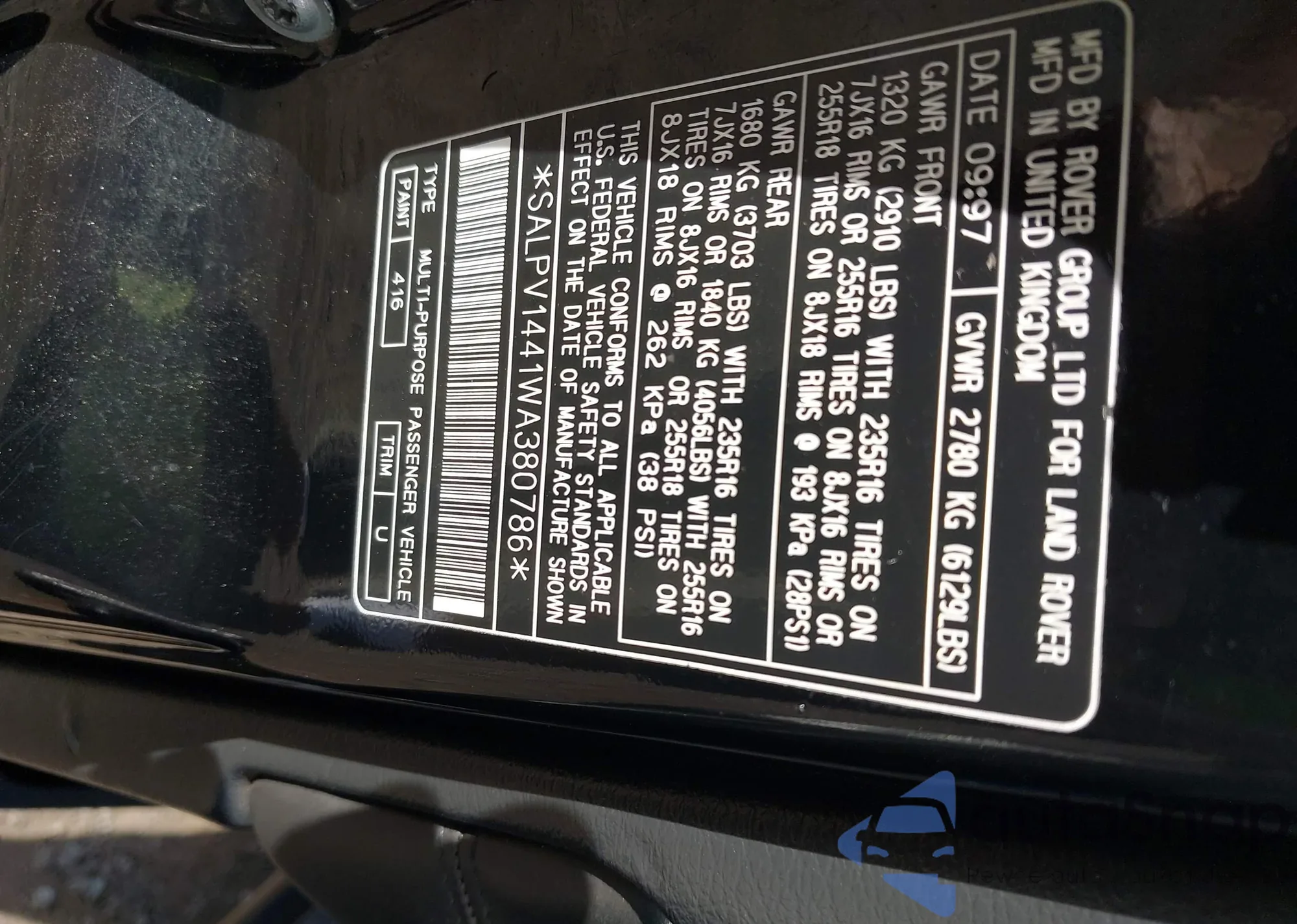 • VIN SALPV1441WA380786