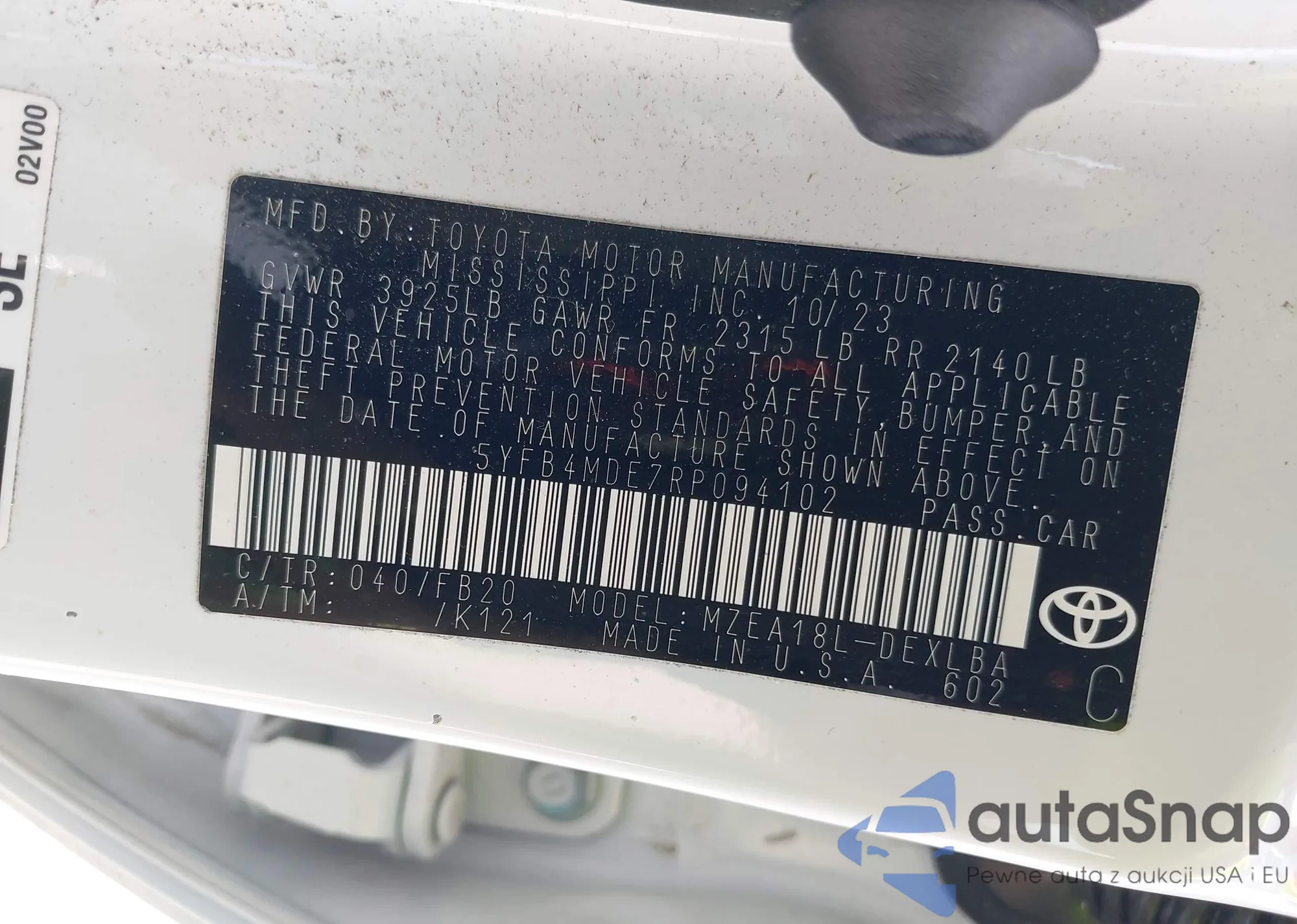 • VIN 5YFB4MDE7RP094102