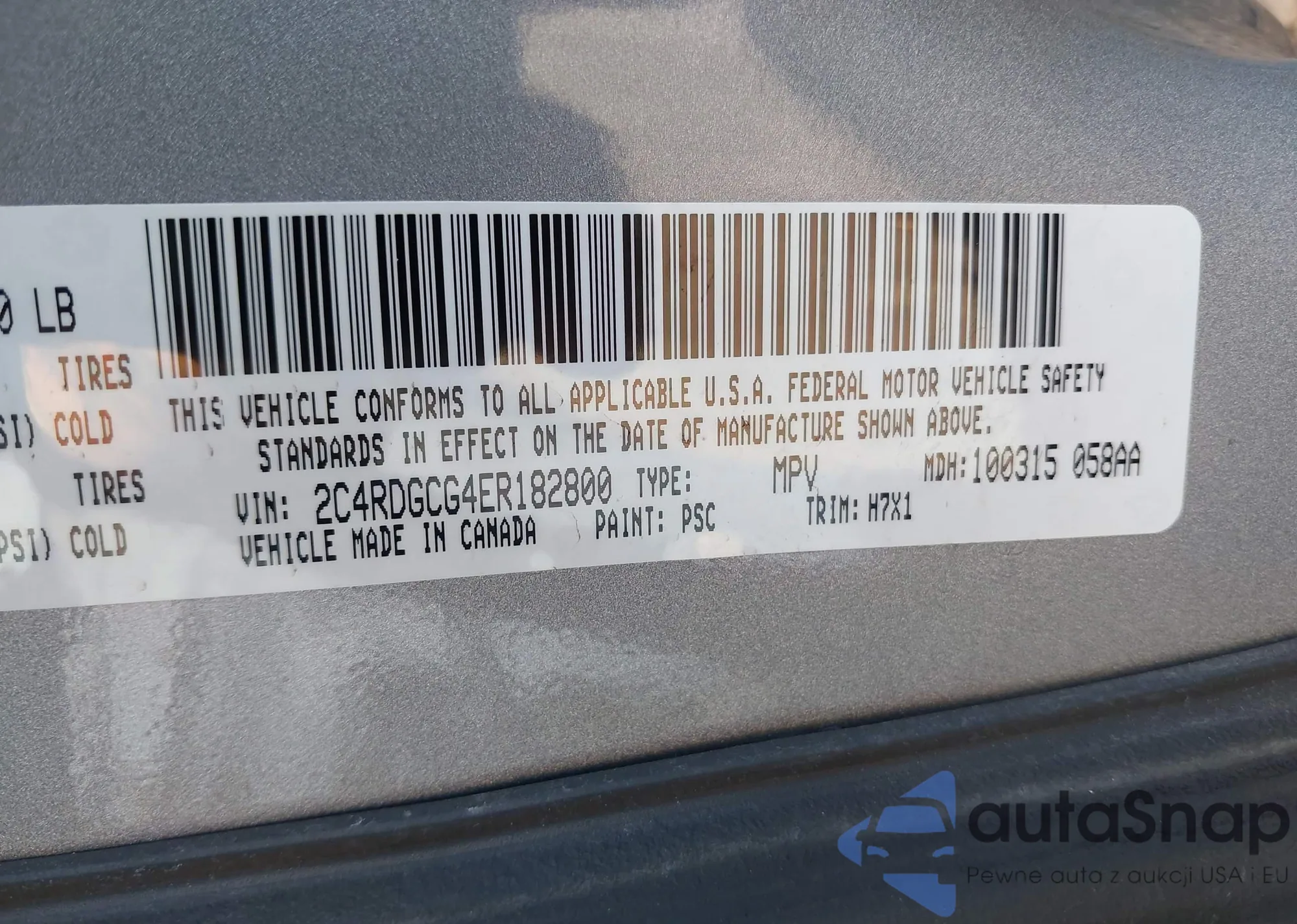 • VIN 2C4RDGCG4ER182800
