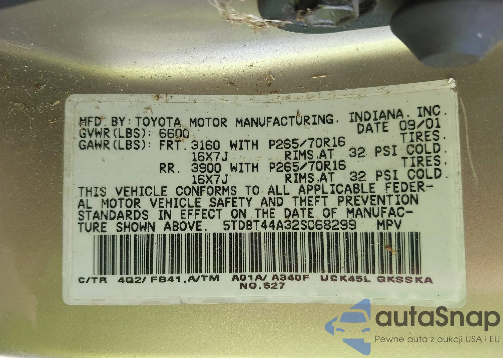 LOT: 43109262 VIN: 5TDBT44A32S068299