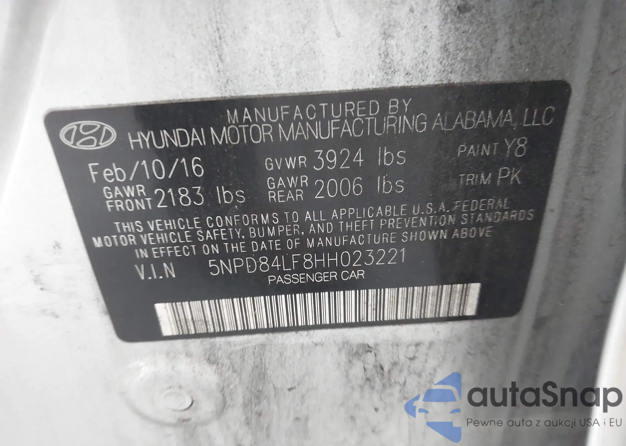 • VIN 5NPD84LF8HH023221