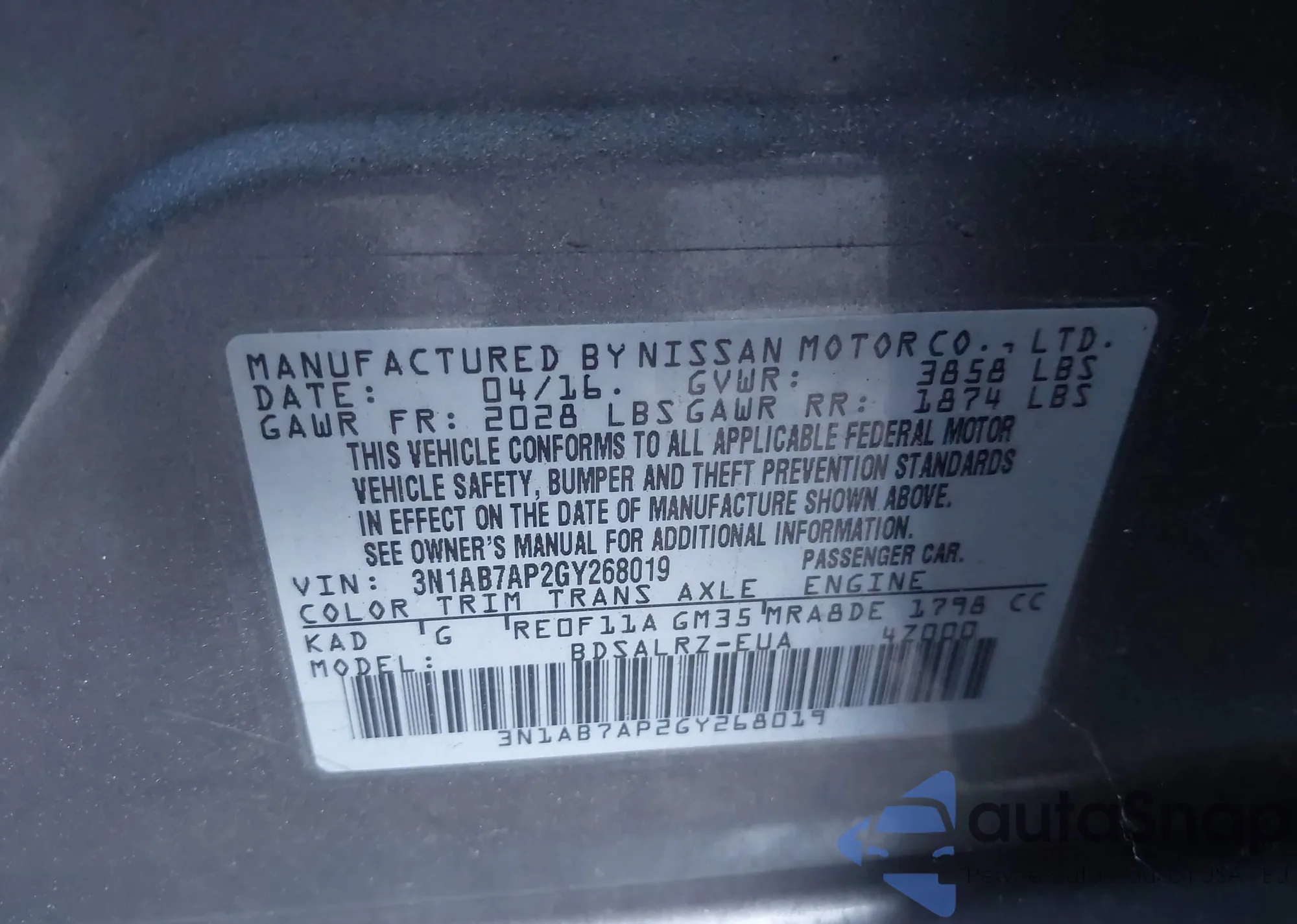 • VIN 3N1AB7AP2GY268019
