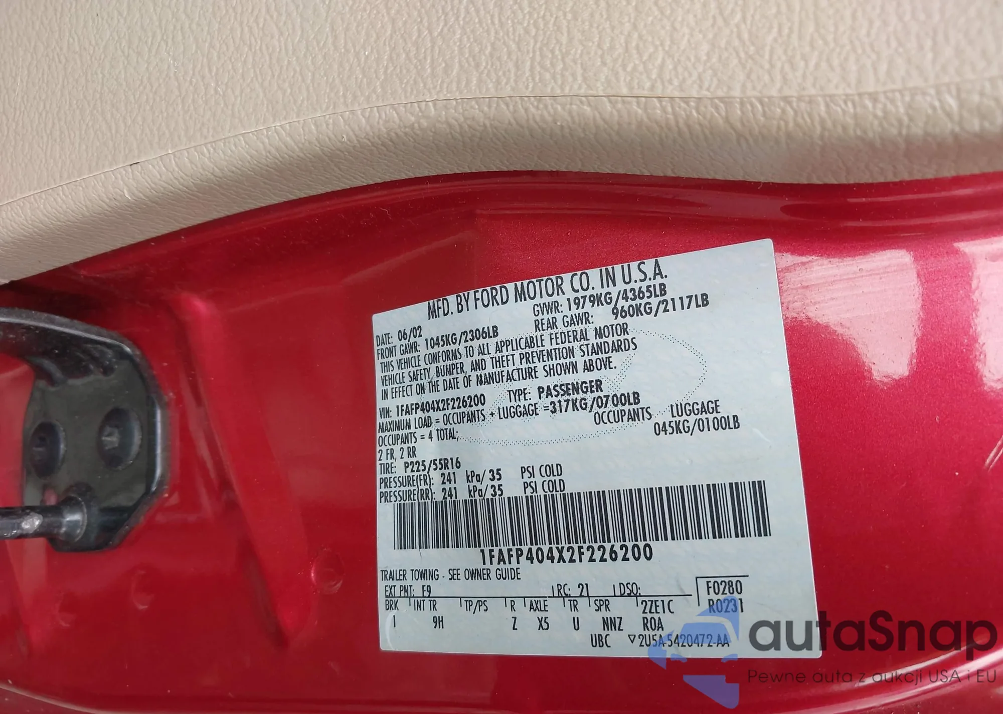 LOT: 42936778 VIN: 1FAFP404X2F226200