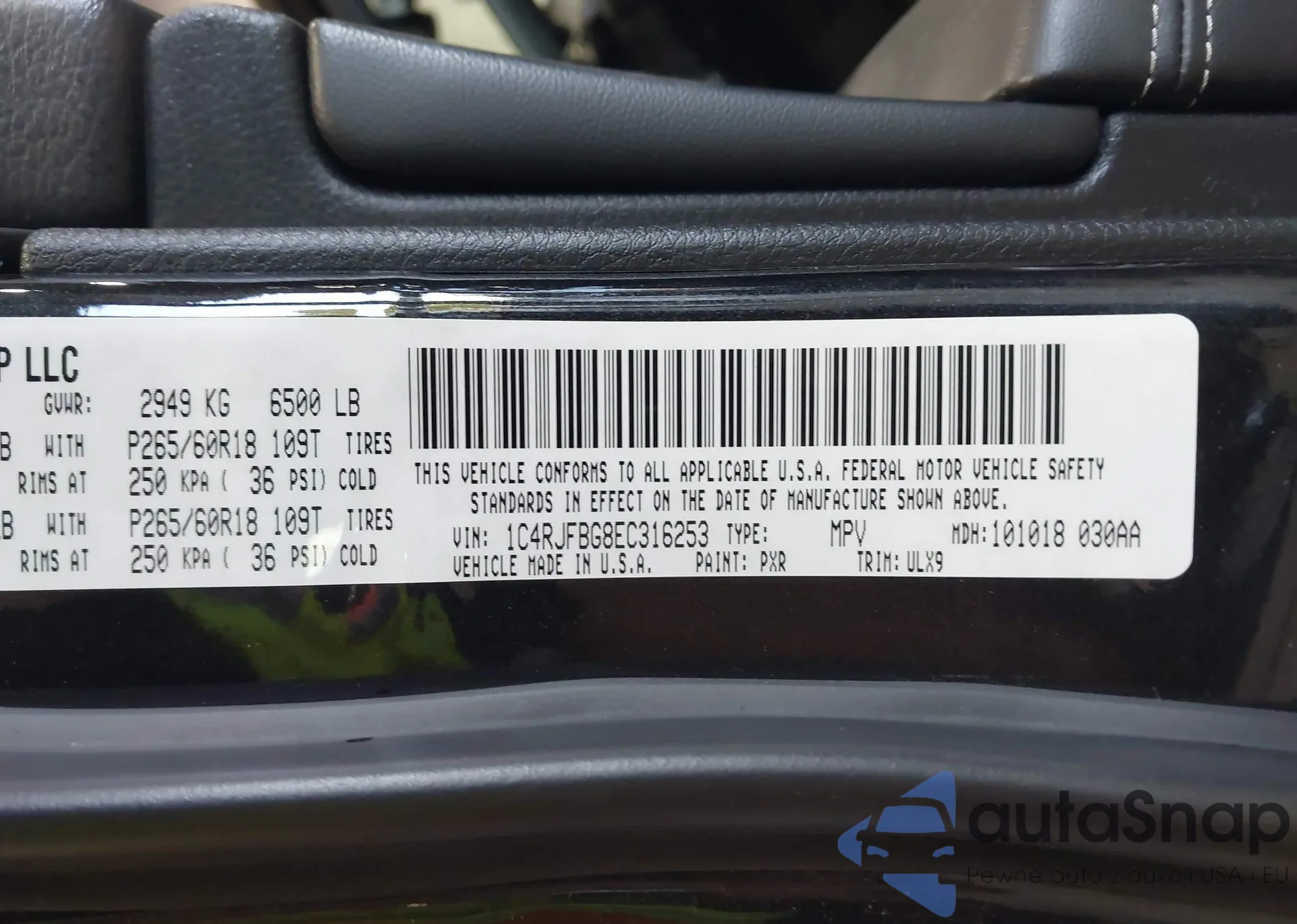 • VIN 1C4RJFBG8EC316253