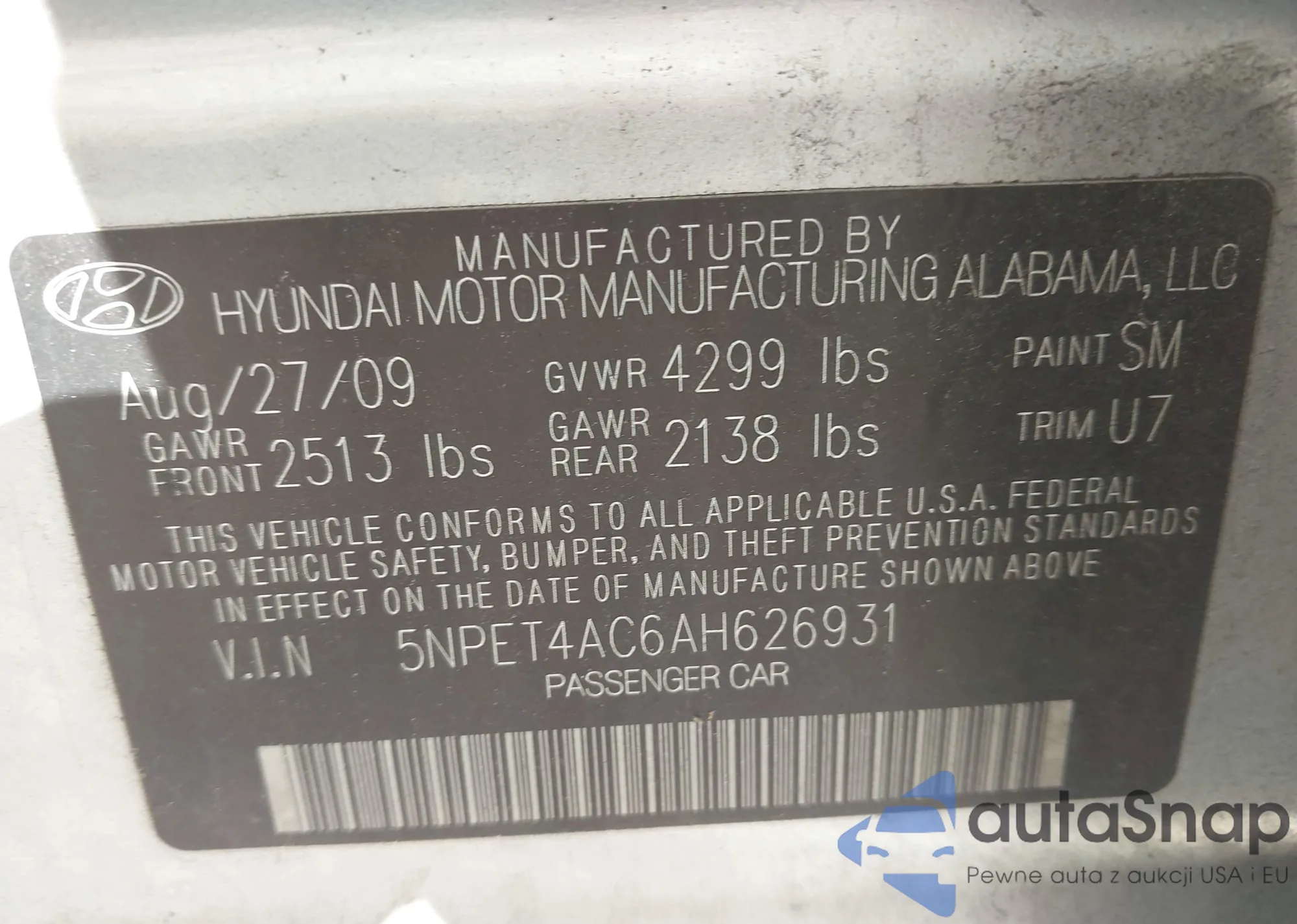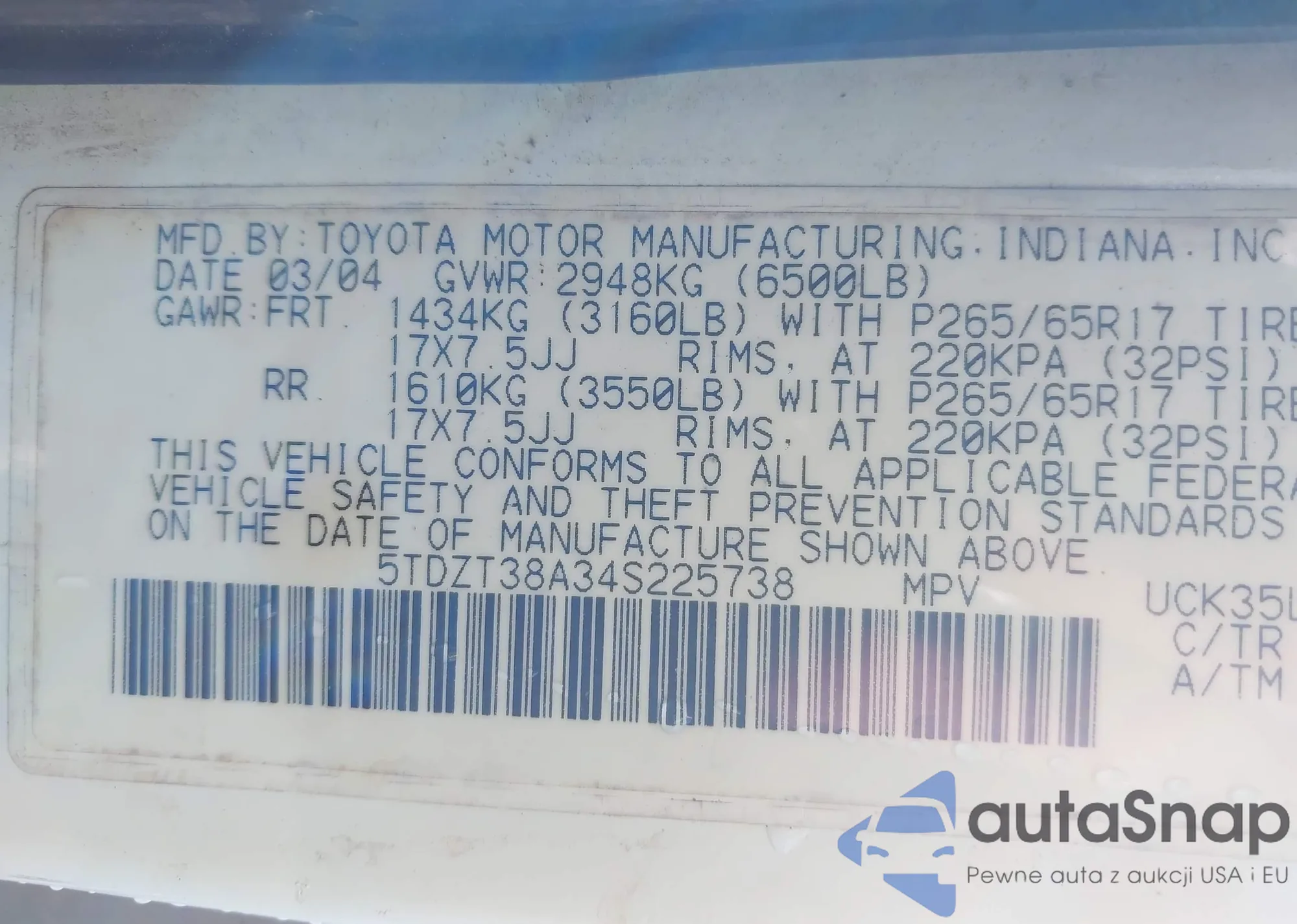 • VIN 5TDZT38A34S225738