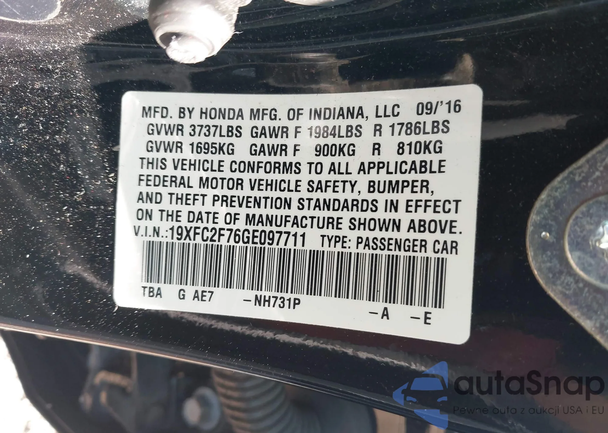 • VIN 1HGCV1E31JA207758