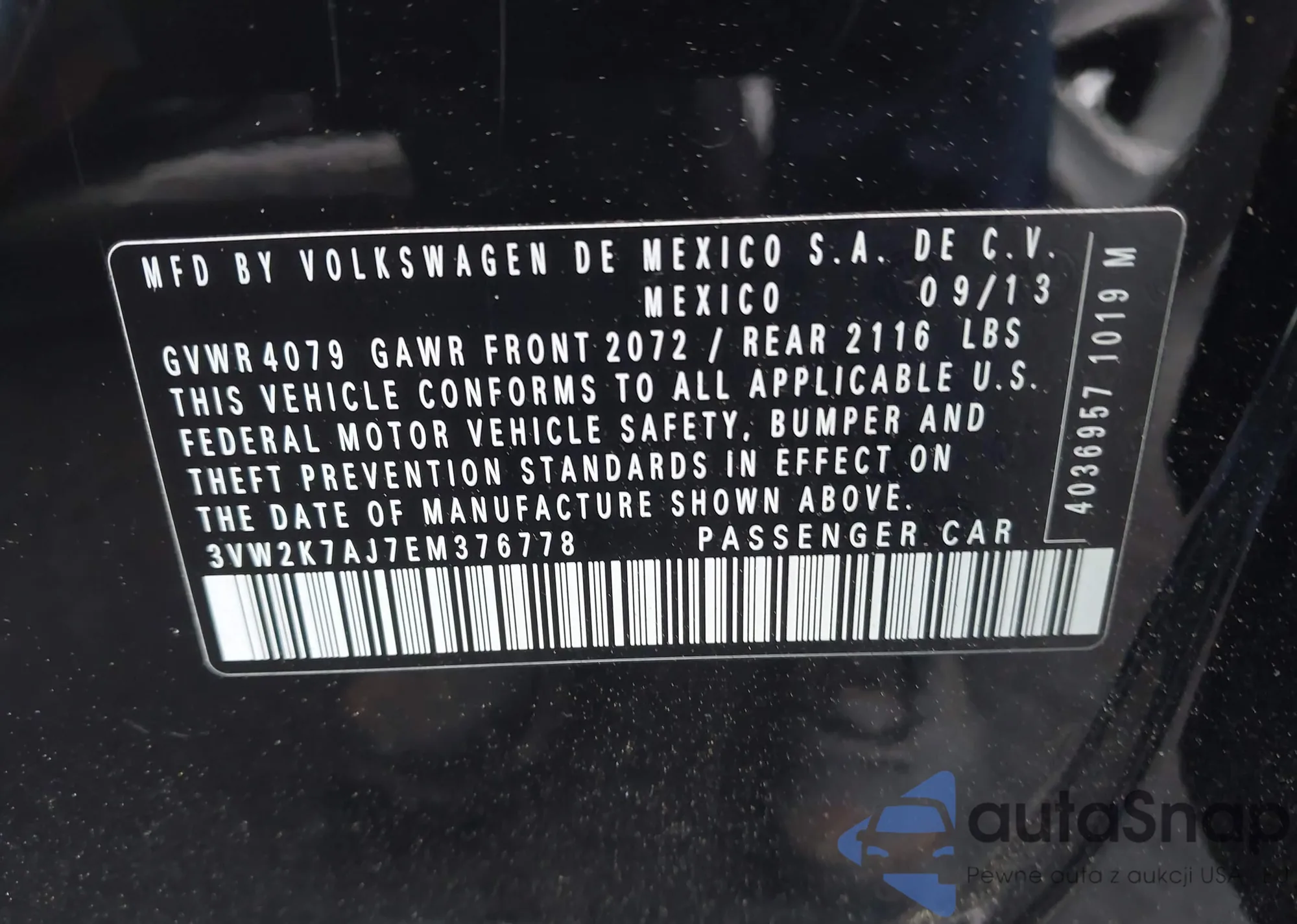 • VIN 3VW2K7AJ7EM376778