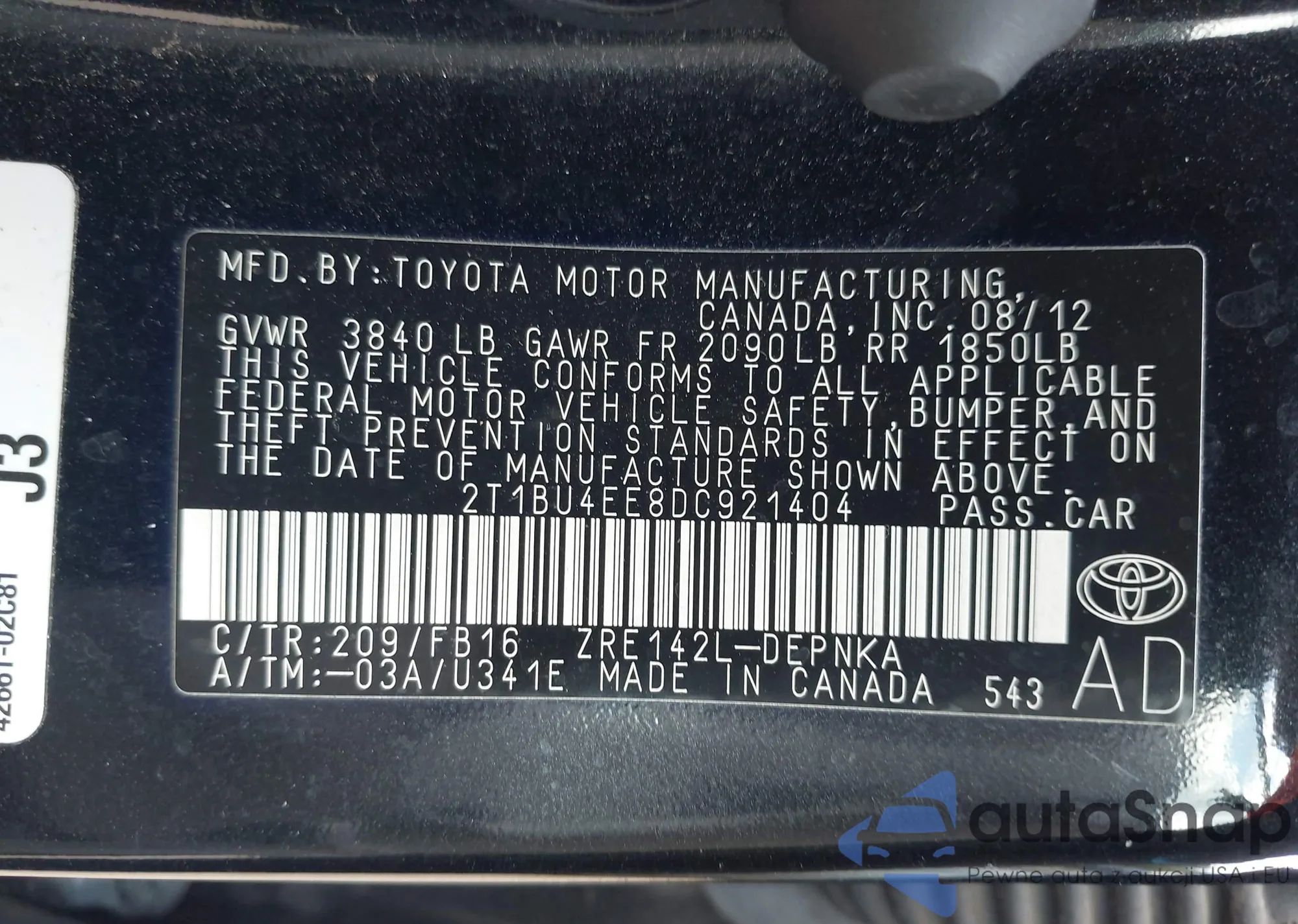 • VIN 2T1BU4EE8DC921404
