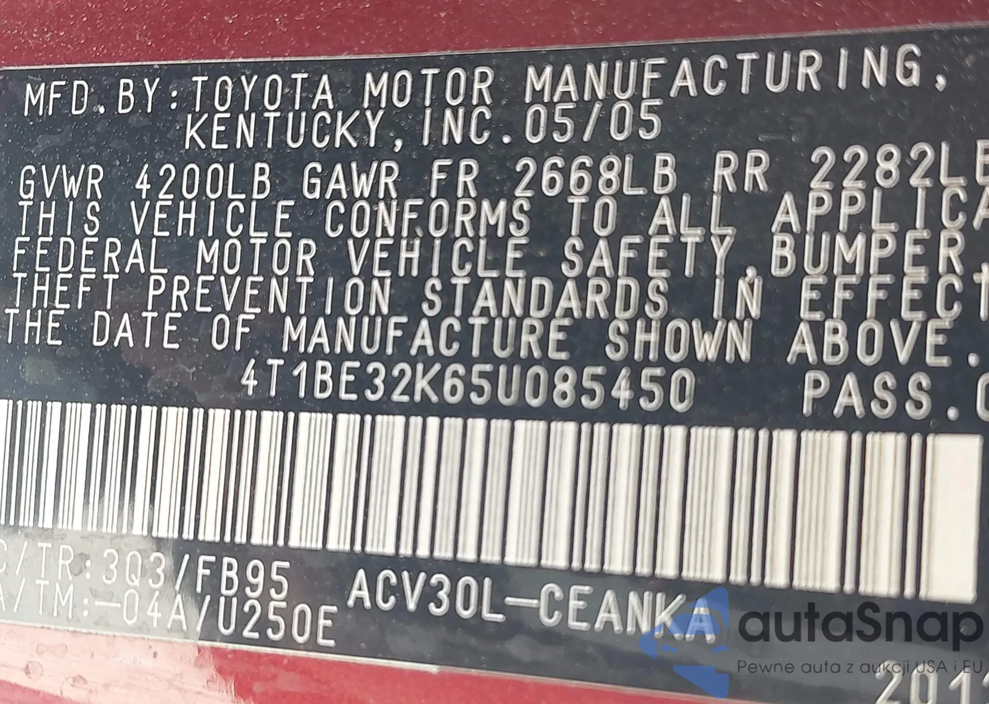 • VIN 4T1BE32K65U085450