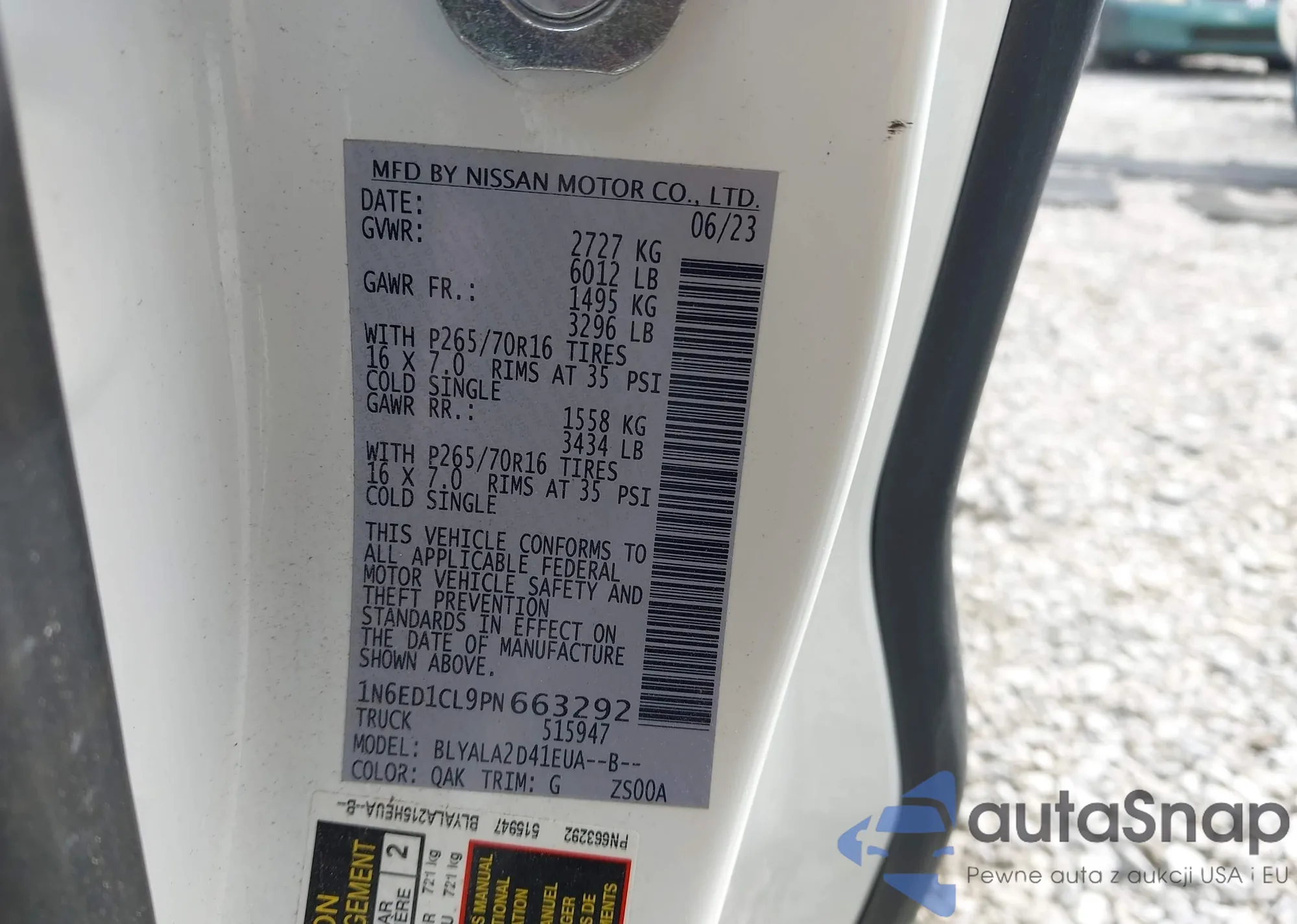 • VIN 1N6ED1CL9PN663292