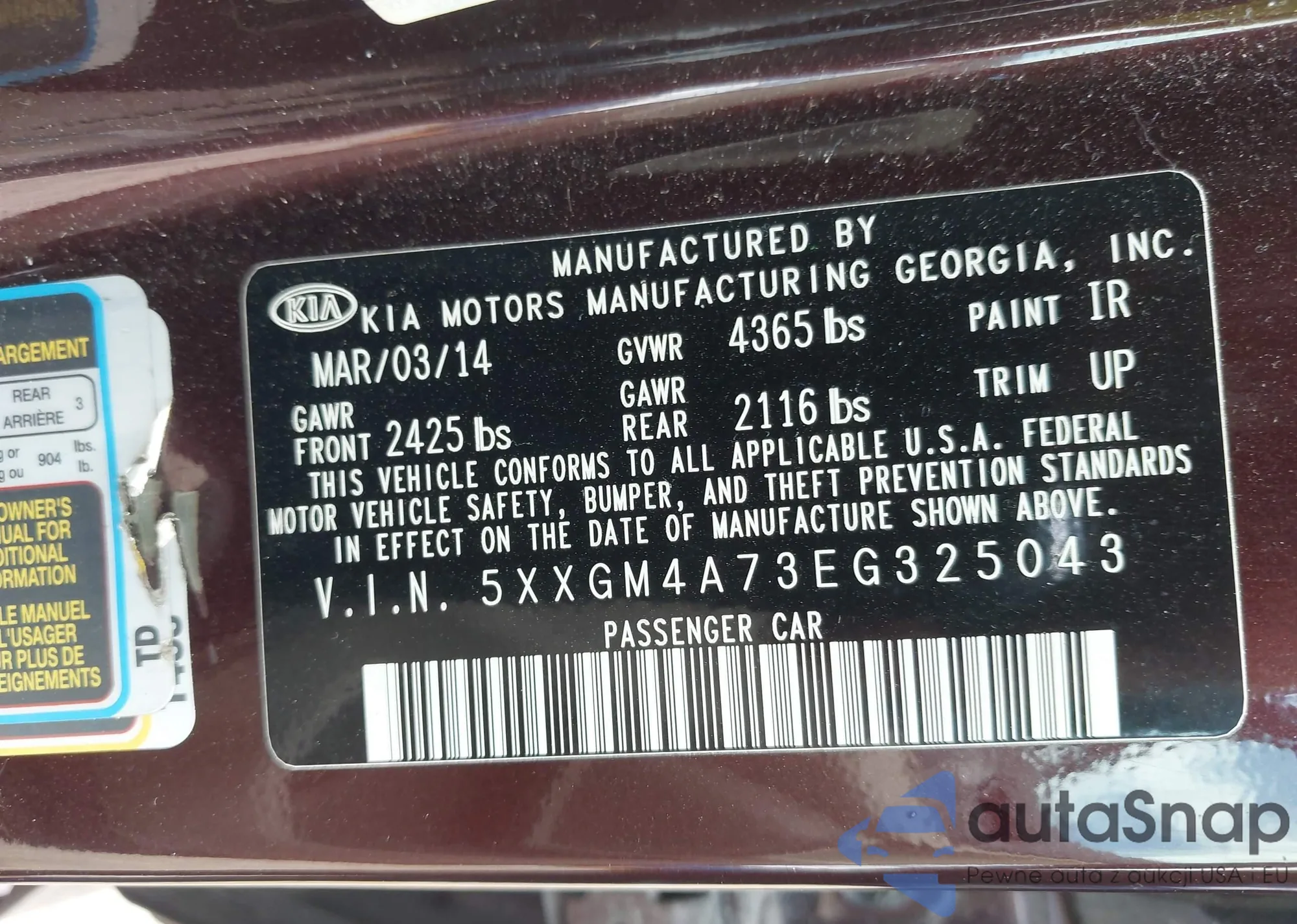 • VIN 5XXGM4A73EG325043