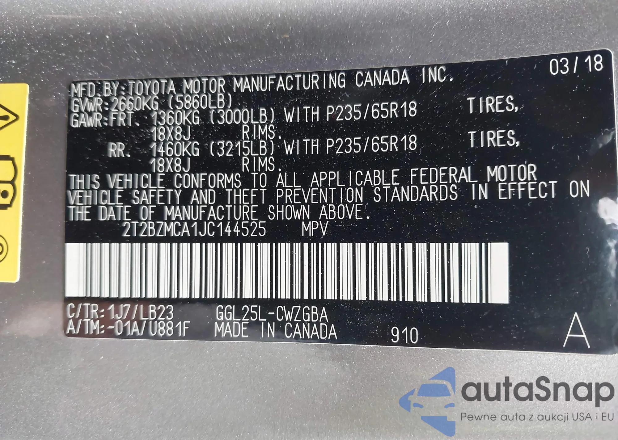 LOT: 42992637 VIN: JTDKN3DU0A0115868