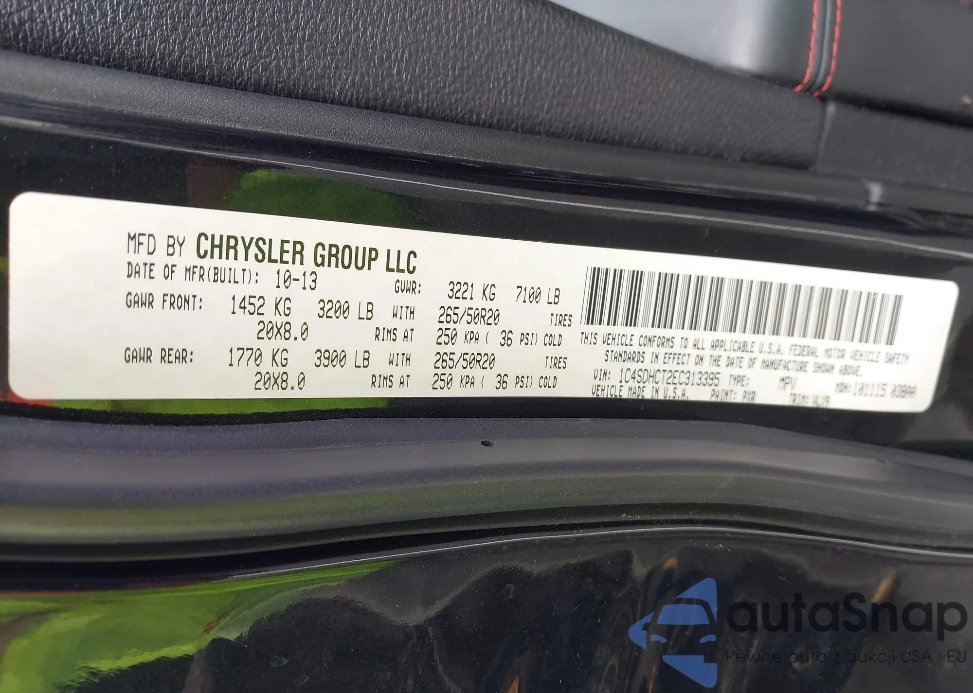 • VIN 1C4SDHCT2EC313395
