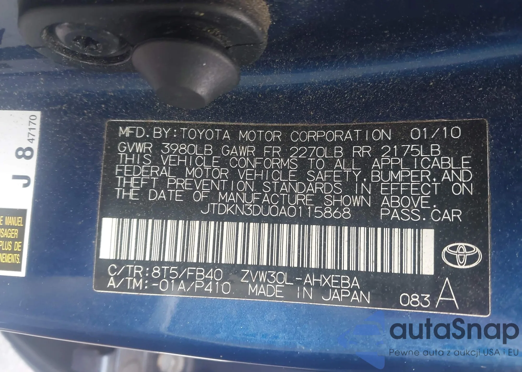 • VIN JTDKN3DU0A0115868