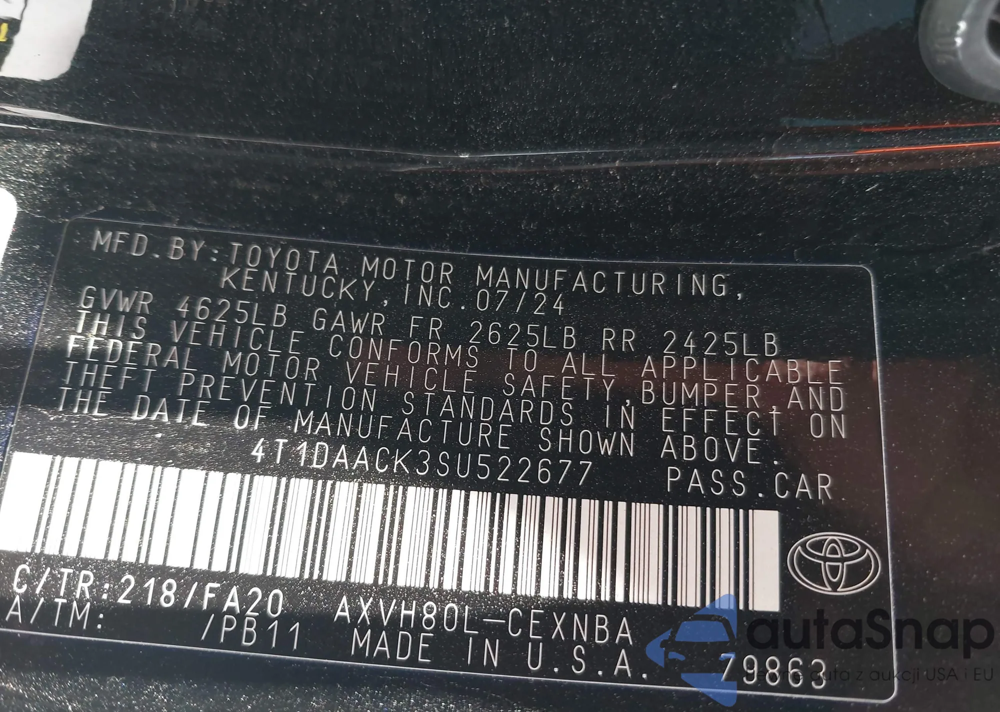 • VIN 4T1DAACK3SU522677