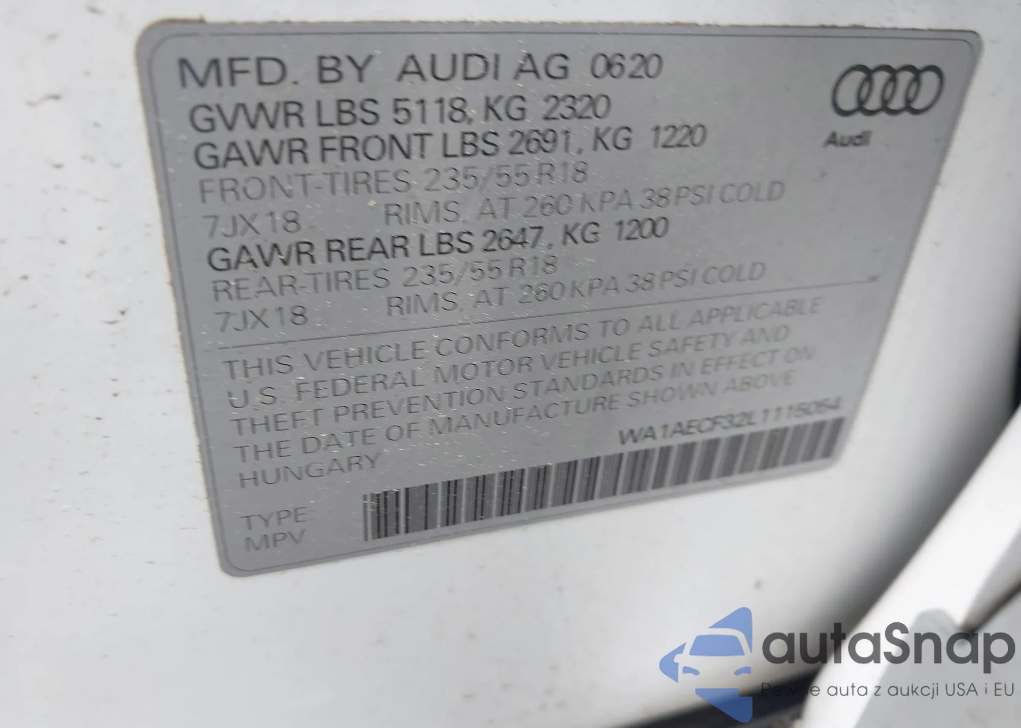 LOT: 42389323 VIN: KM8K1CAA5JU152487