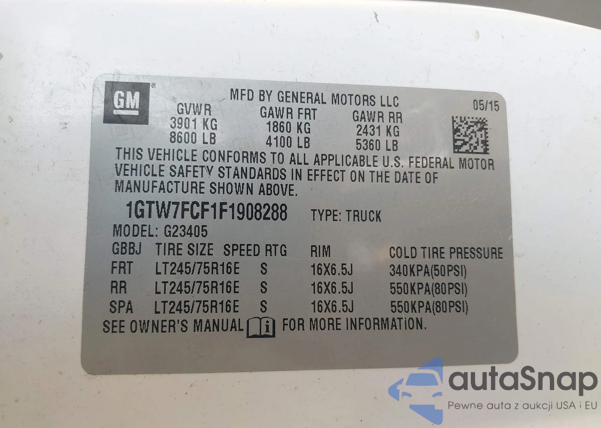 • VIN 1GTW7FCF1F1908288