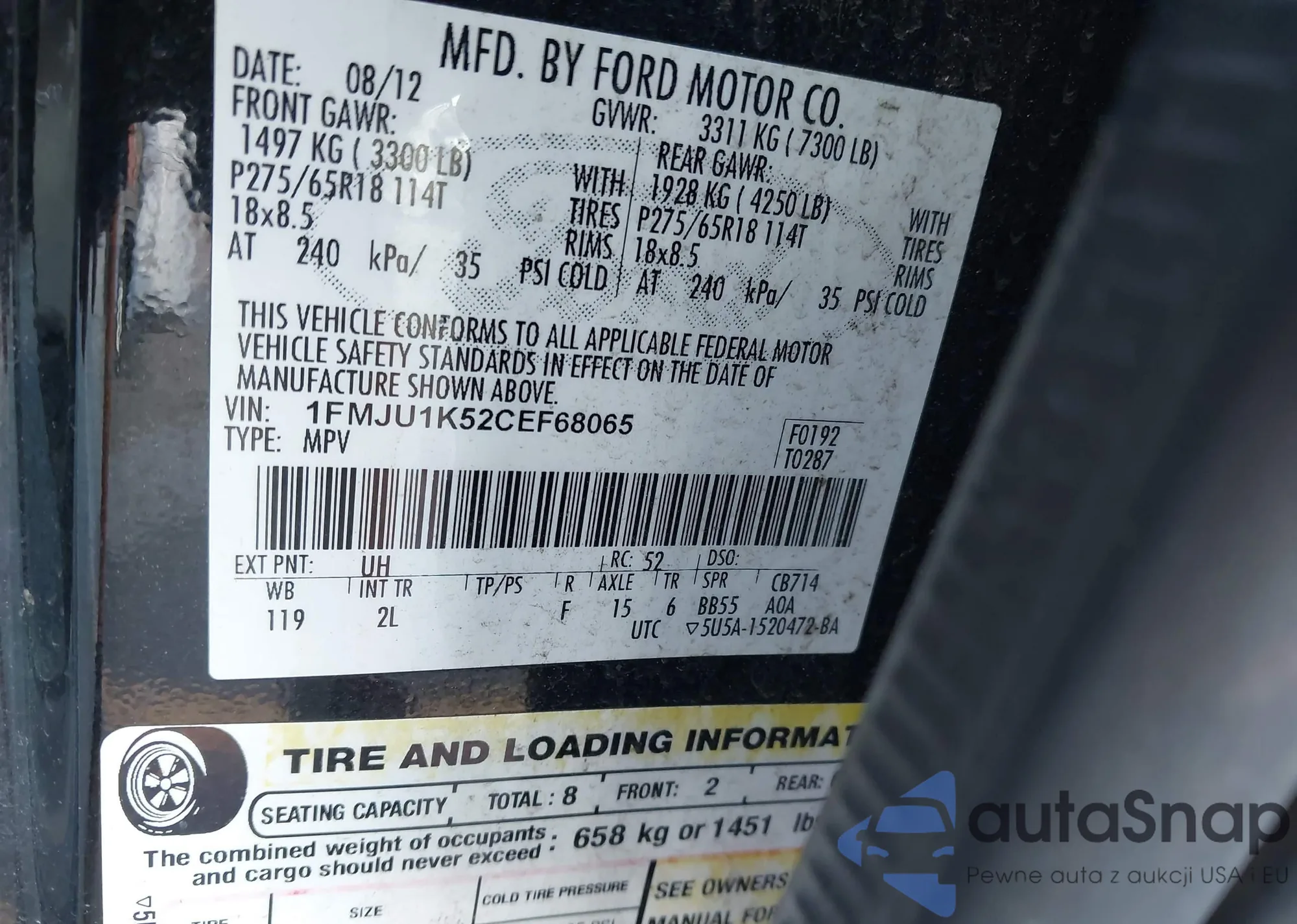 LOT: 42648892 VIN: 1FMSK7DH3LGC49752