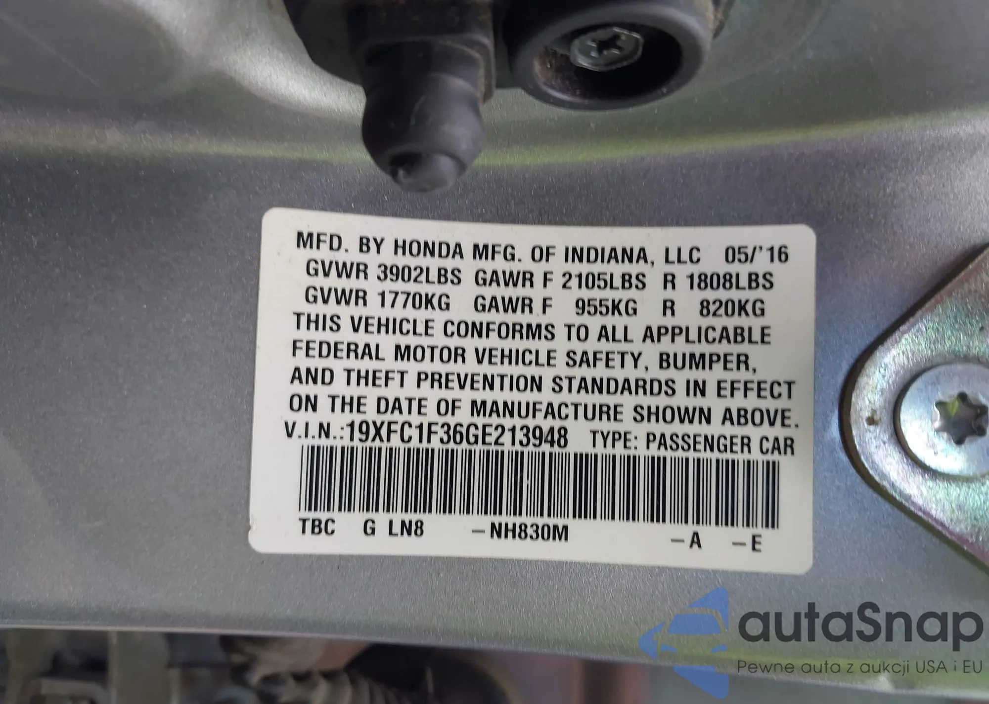 LOT: 43093703 VIN: 1HGCR2F30HA234677