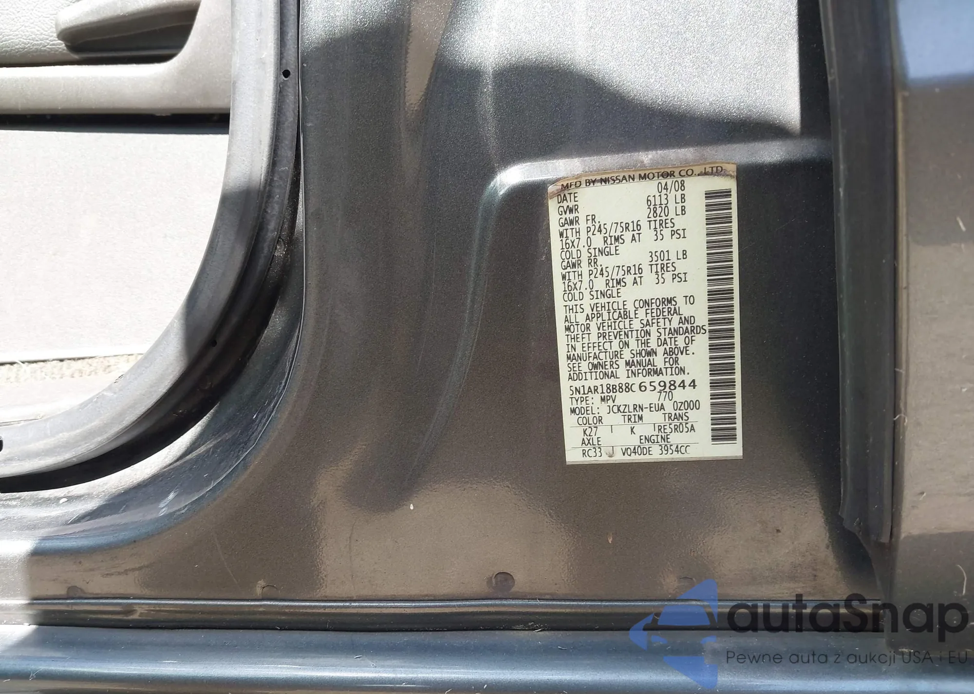 • VIN 5N1AR18B88C659844