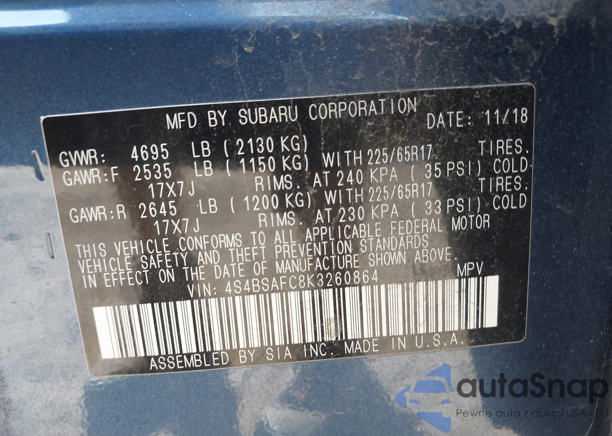 • VIN WAUBNCF52KA029671