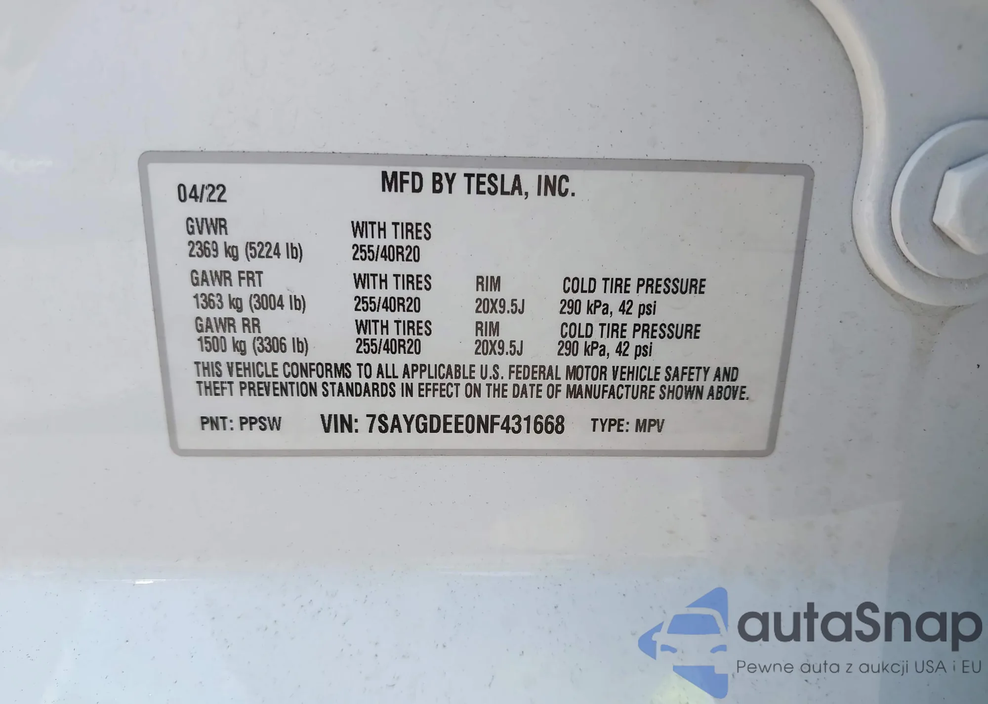 • VIN 7SAYGDEE0NF431668