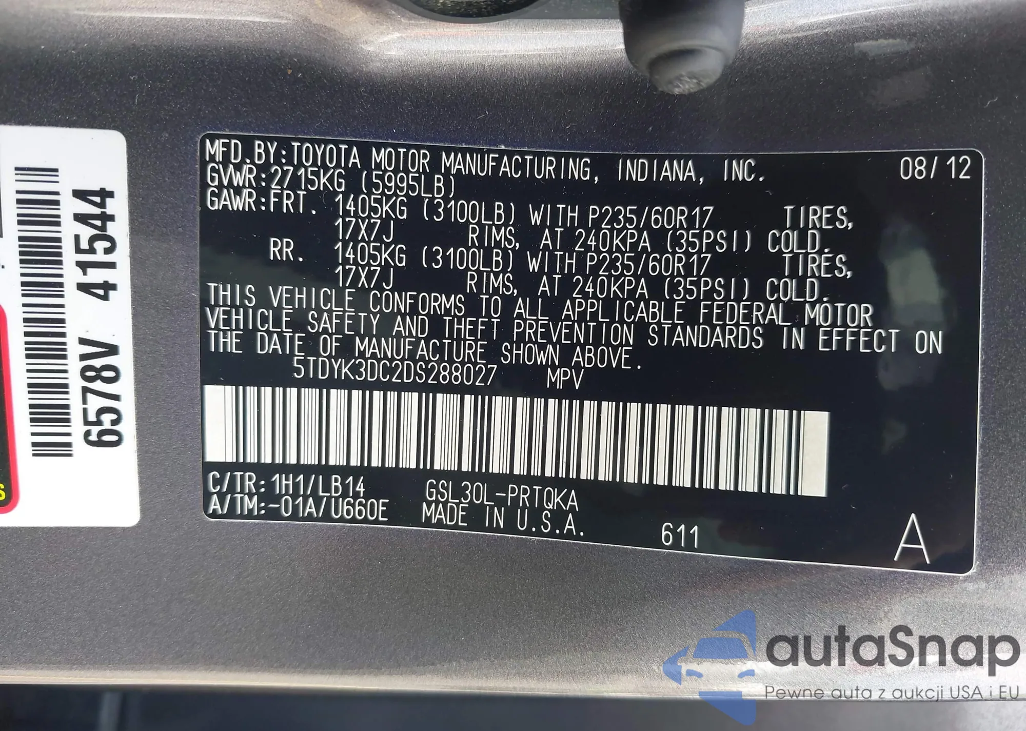 • VIN 5TDYK3DC2DS288027